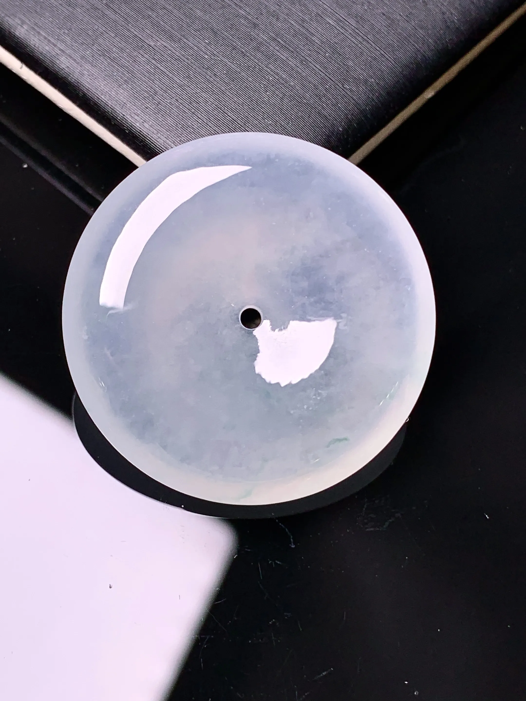 天然A货翡翠种白冰平安扣吊坠,尺寸17.6-4.9,重量:3.79g 12月12日