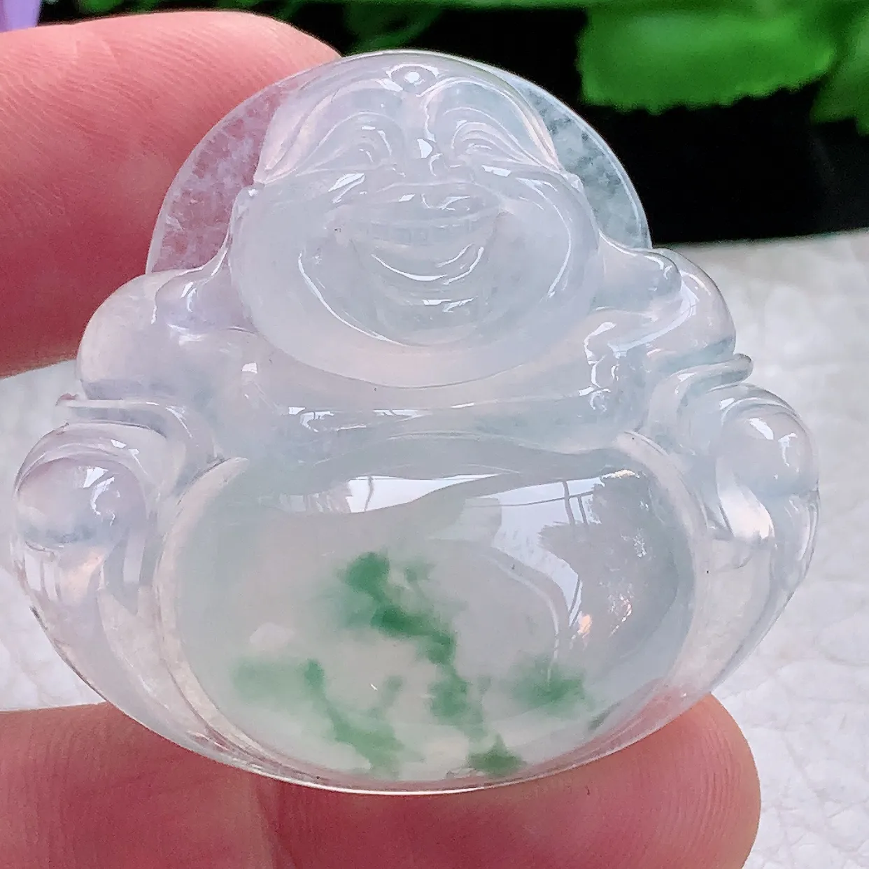 【冰种紫罗兰财神】质地细腻,工艺很好,饱满圆润,笑口常开,18k金钻镶嵌,裸石尺寸28.7*16.7