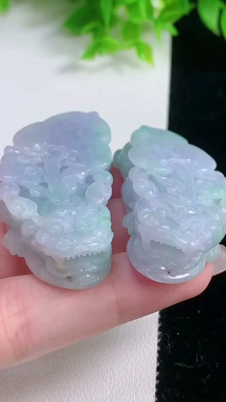 天然A货翡翠紫罗兰貔貅吊坠一对,尺寸44-22.3-11.5,重量:52.50g 1月18日