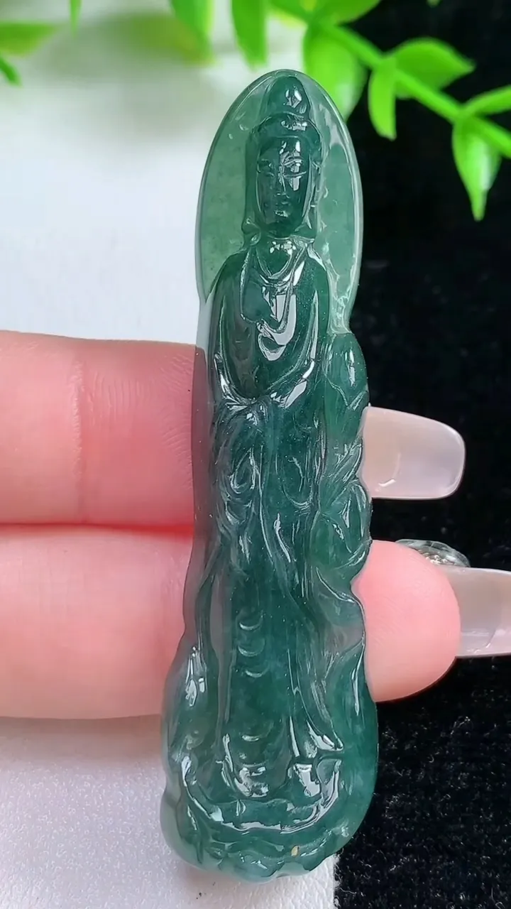 天然A货翡翠飘花虚空藏菩萨吊坠,尺寸69.2-41-5.3,重量:35.80g 1月18日