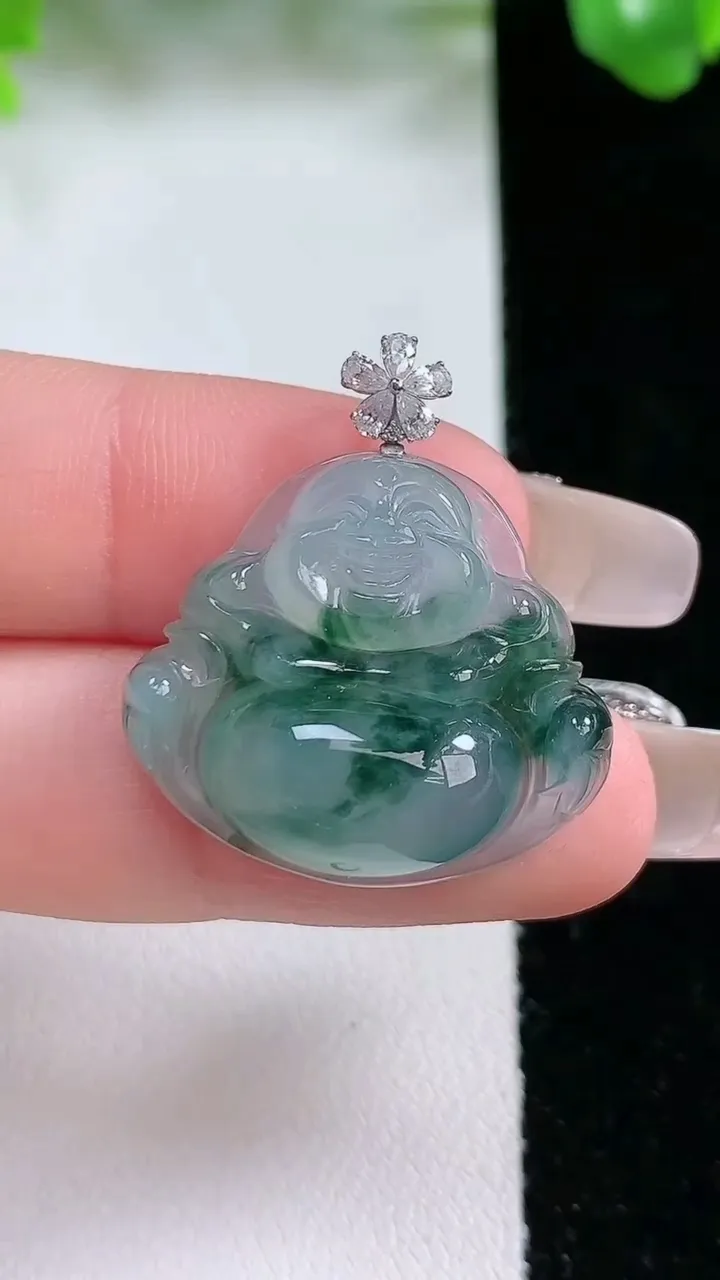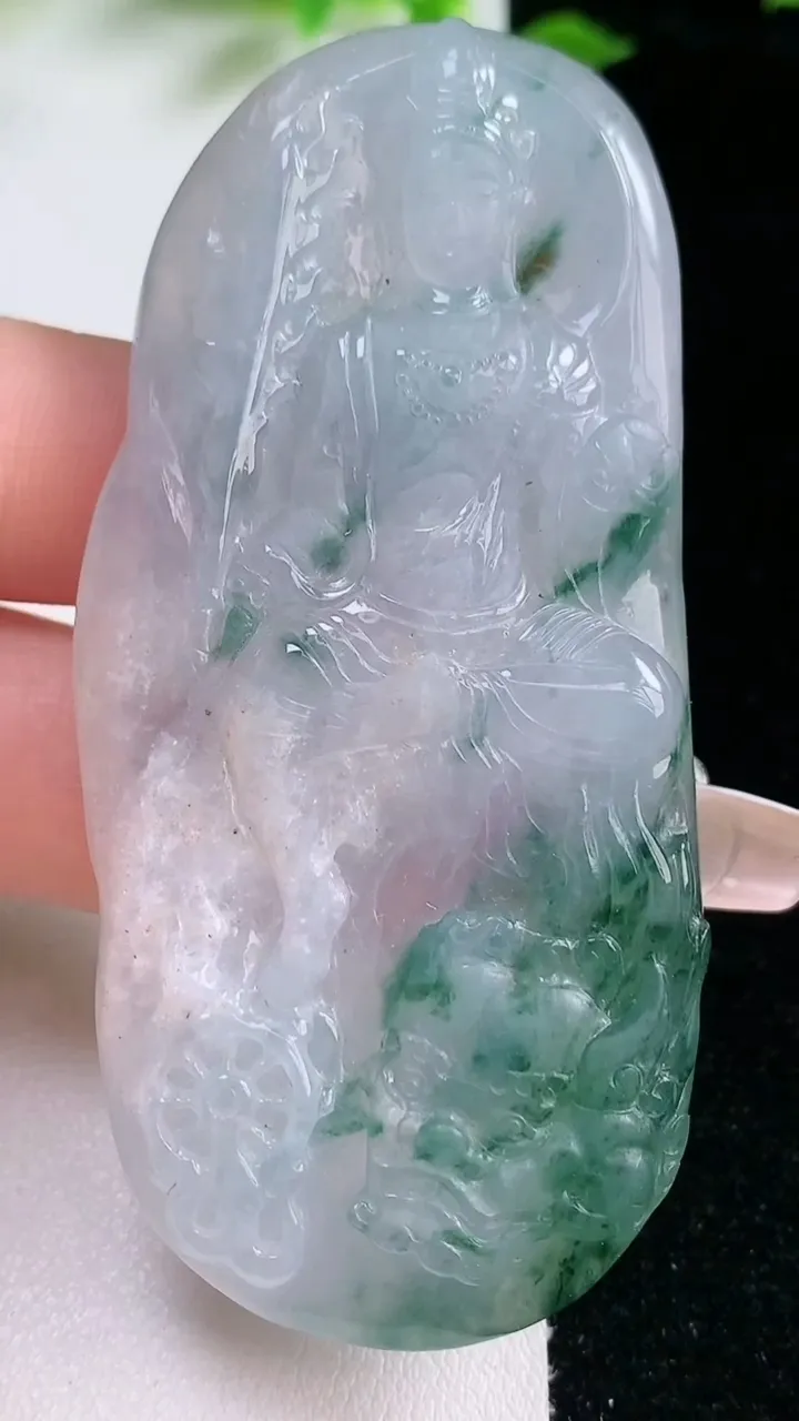 天然A货翡翠种飘花佛公吊坠,尺寸22.5-24.7-7.3,重量:5.93g 1月20日