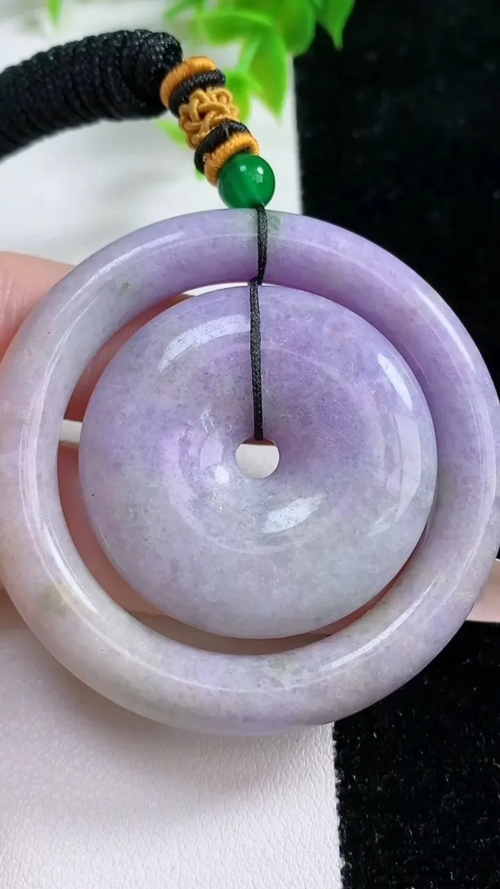 天然A货翡翠紫罗兰母子平安扣吊坠,尺寸53.6-7.6/36.2-7.9 1月21日