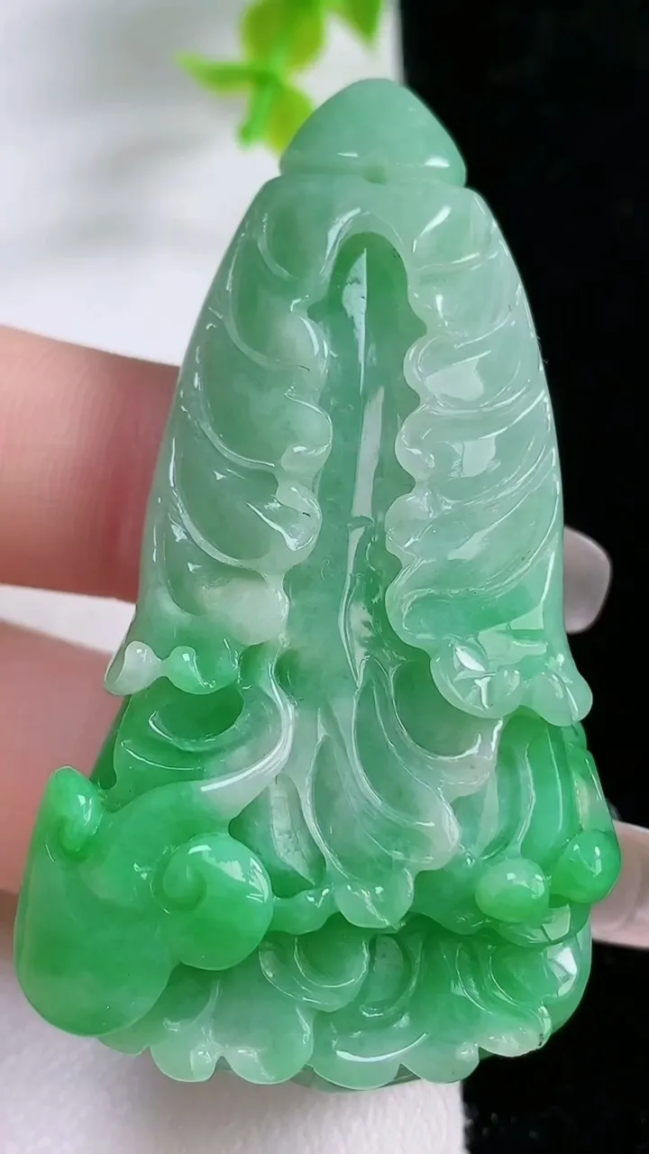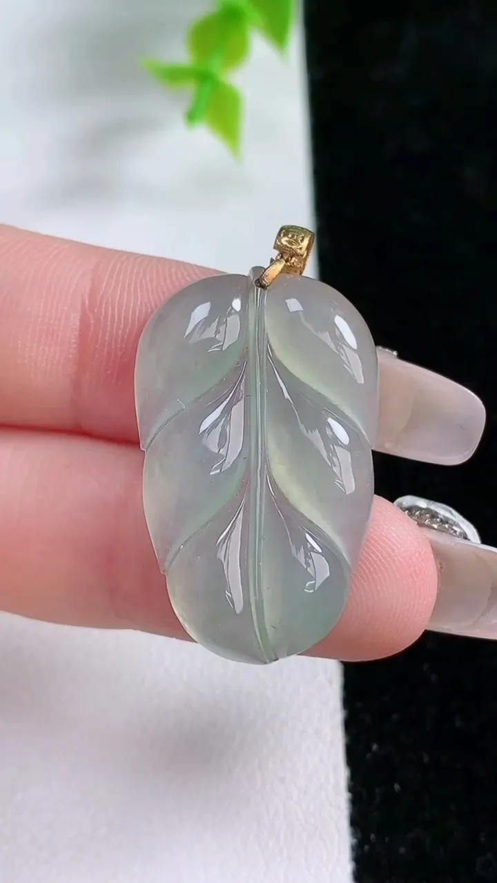天然A货翡翠金枝玉叶 叶子吊坠,尺寸29.5-18.5-4,重:4.10g 1月21日