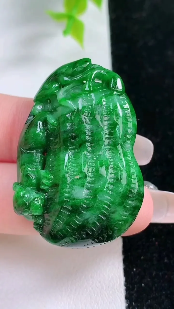 天然A货翡翠白菜吊坠,尺寸59.3-33.2-11.6,重:34.13g 1月21日