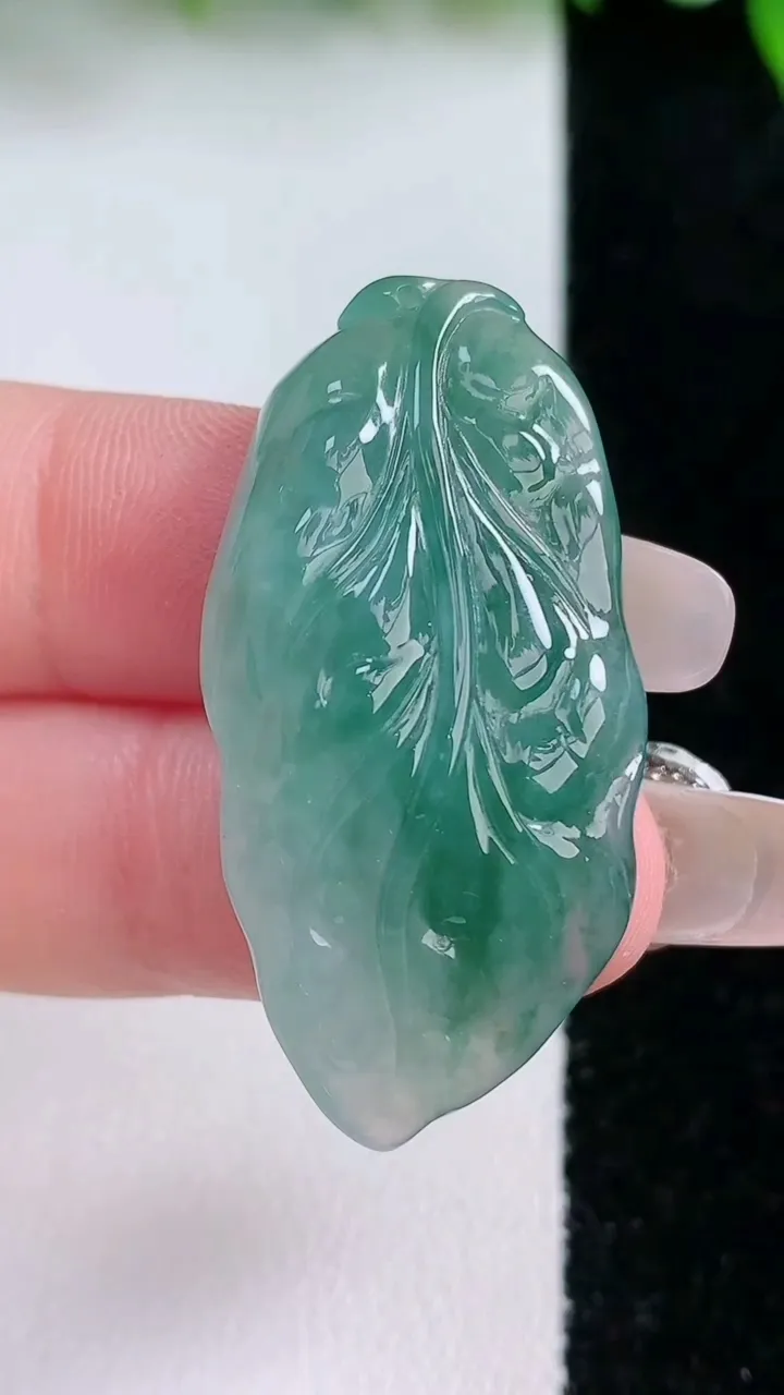 天然A货翡翠飘花金枝玉叶 叶子吊坠,尺寸39.4-19-7.6,重量:9.04g 1月24日