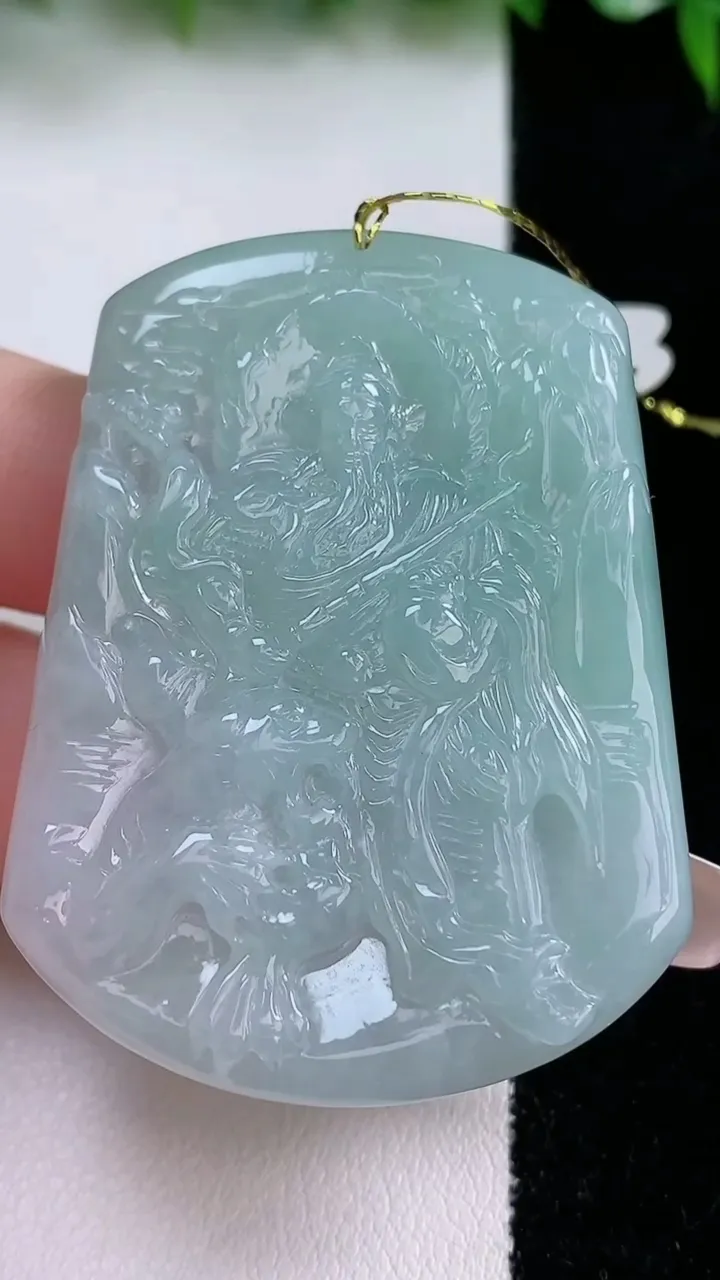 天然A货翡翠关公吊坠,尺寸52.7-38.7-7,重量:31.60g 1月24日