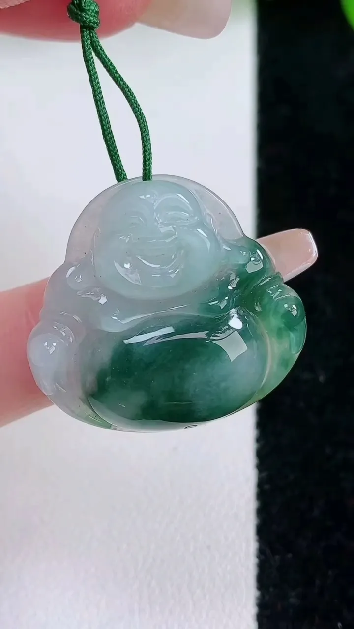 天然A货翡翠飘花佛公吊坠,尺寸25.6-28-6,重量:6.74g 1月24日