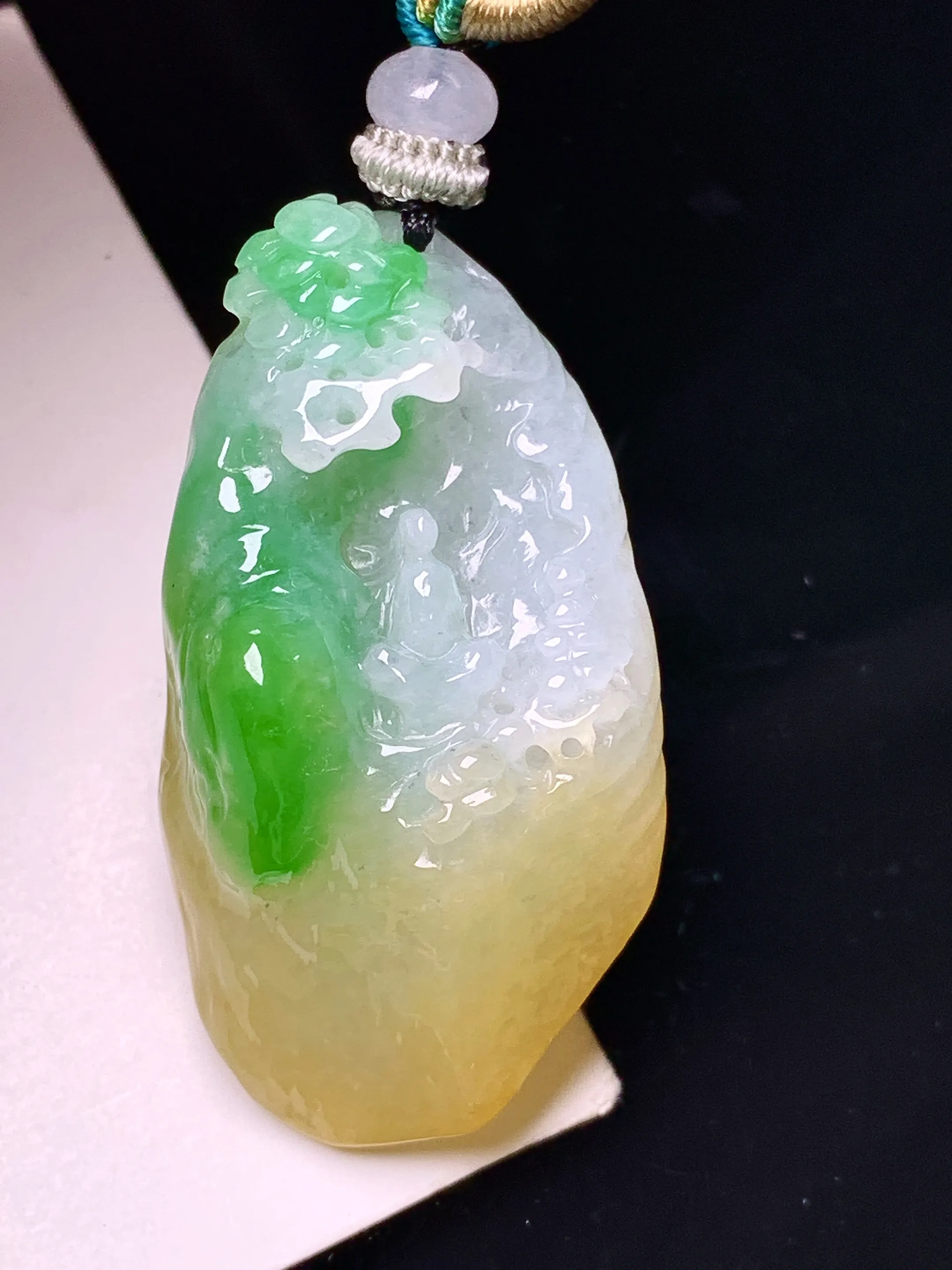 飘黄绿山水悟道吊坠 …
