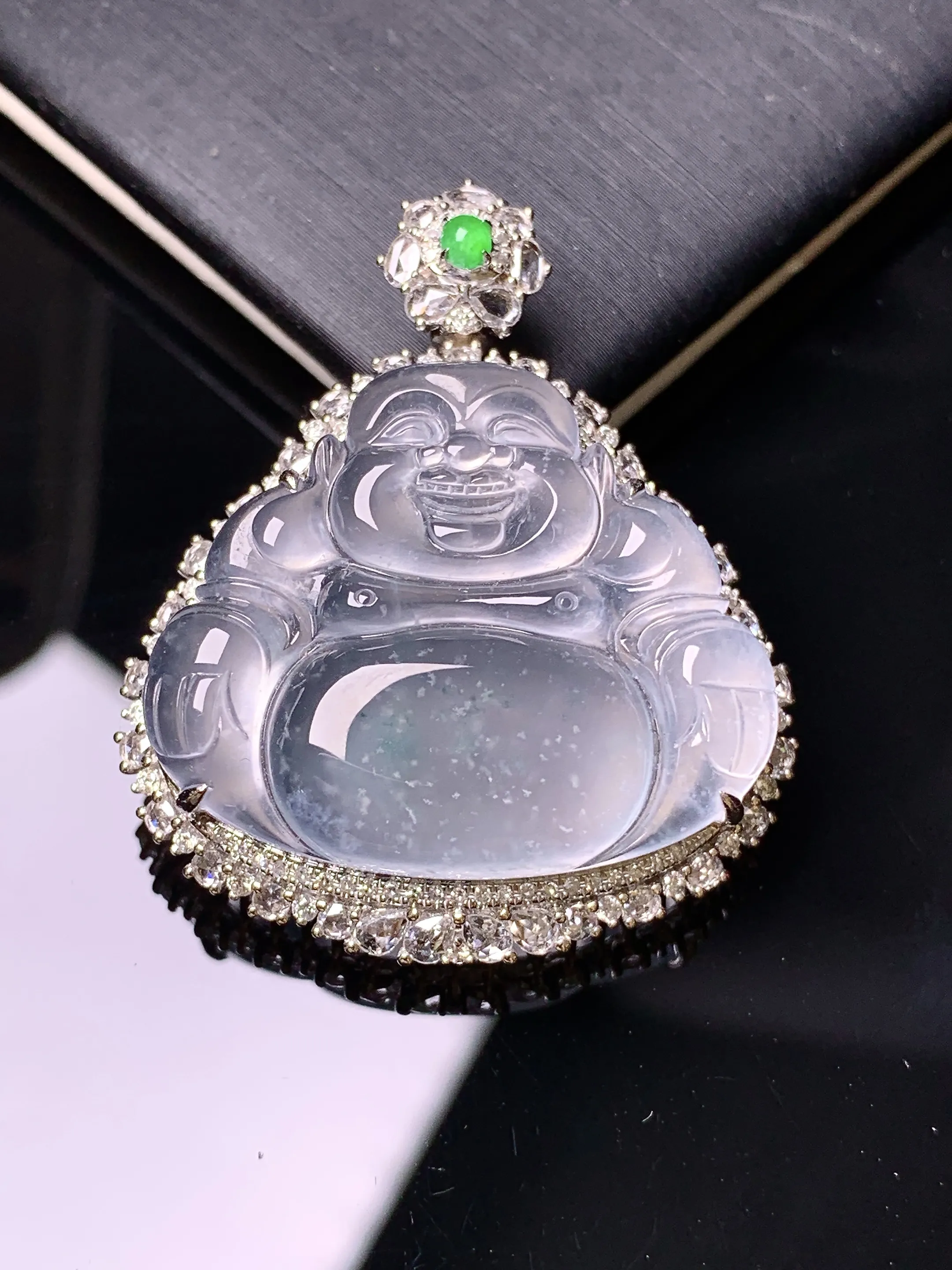 18k金钻镶嵌冰种佛公吊坠 玉质细腻 色泽清新艳丽 整体尺寸36.5*30.8*10.2