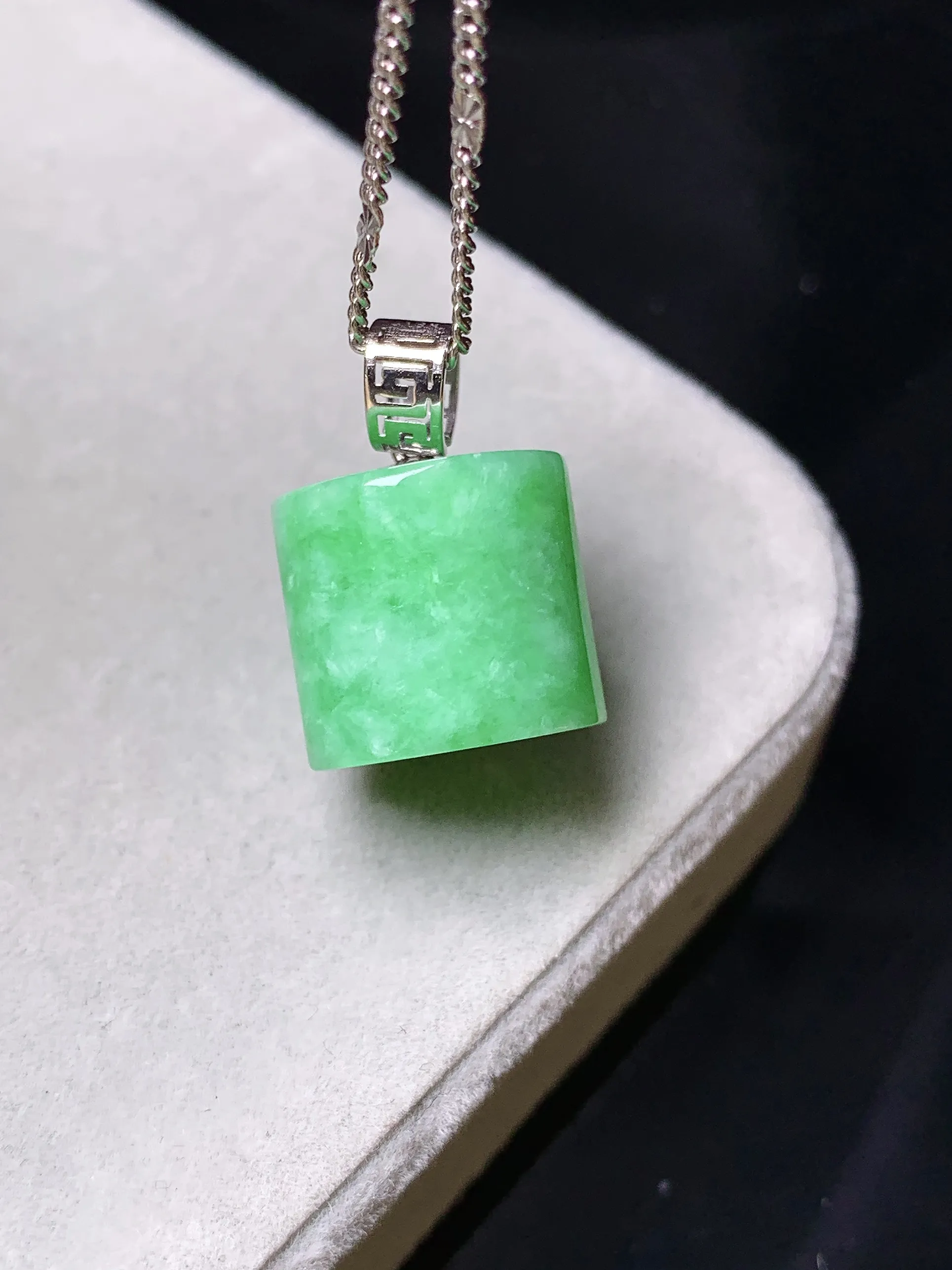 18k金镶嵌翠绿路路通吊坠 玉质细腻 色泽清新艳丽 整体尺寸19*13.3*12