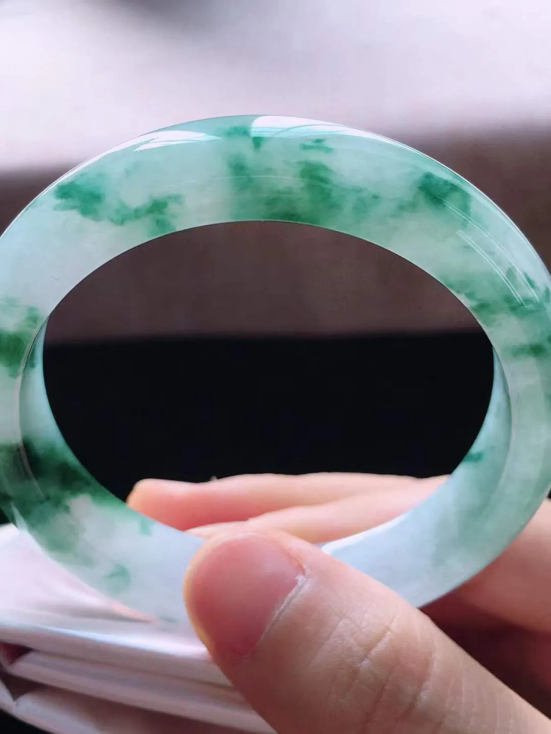 53.4圈有种有色天然翡翠A货飘绿玉手镯好种水水润手镯49.37g