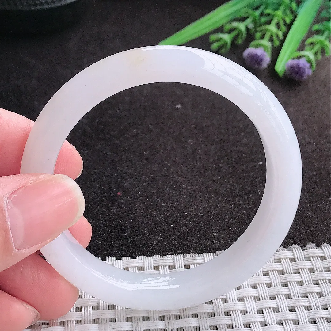 实拍A货翡翠52/9.2/8老坑冰纯起胶月光白手镯宽边玉镯手环