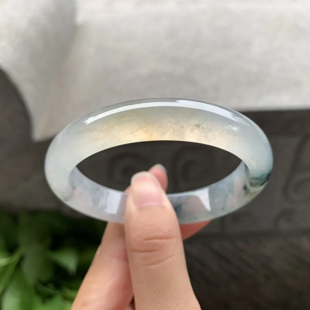 圈口 55.5-49-12.3-7.4【冰种乌鸡黄贵妃手镯】贵妃55 56可戴