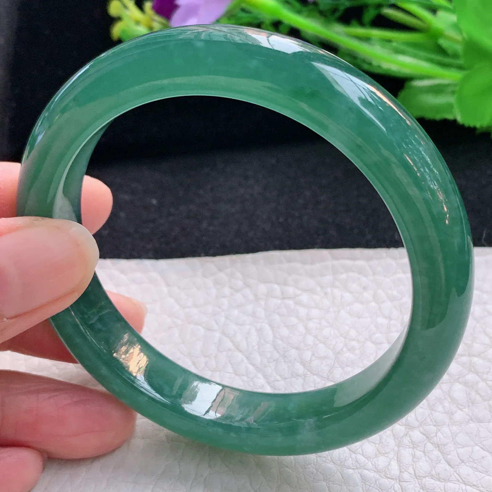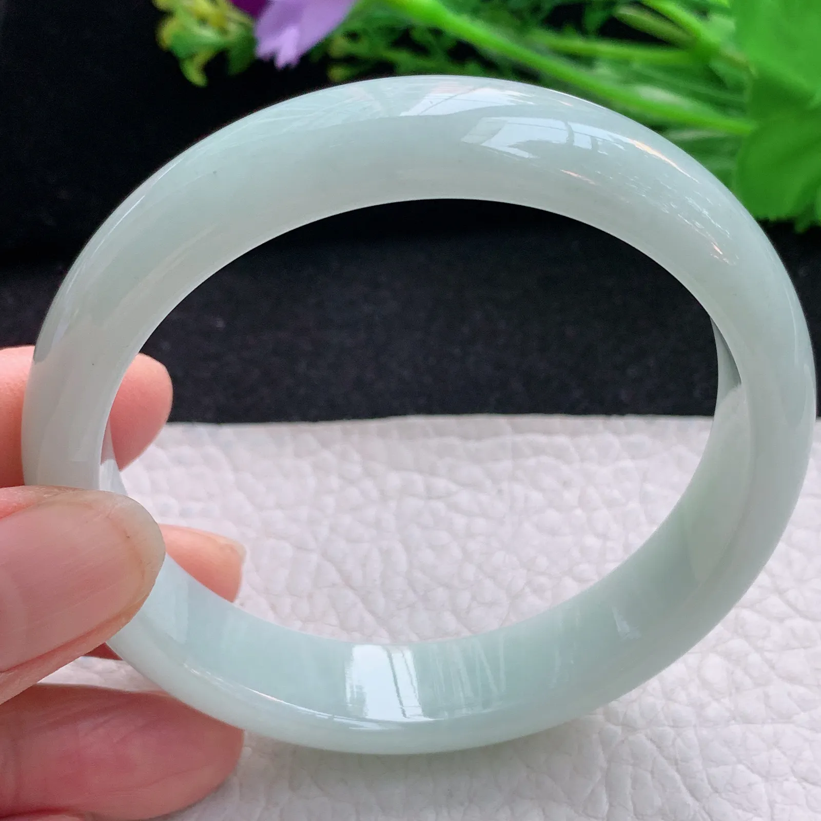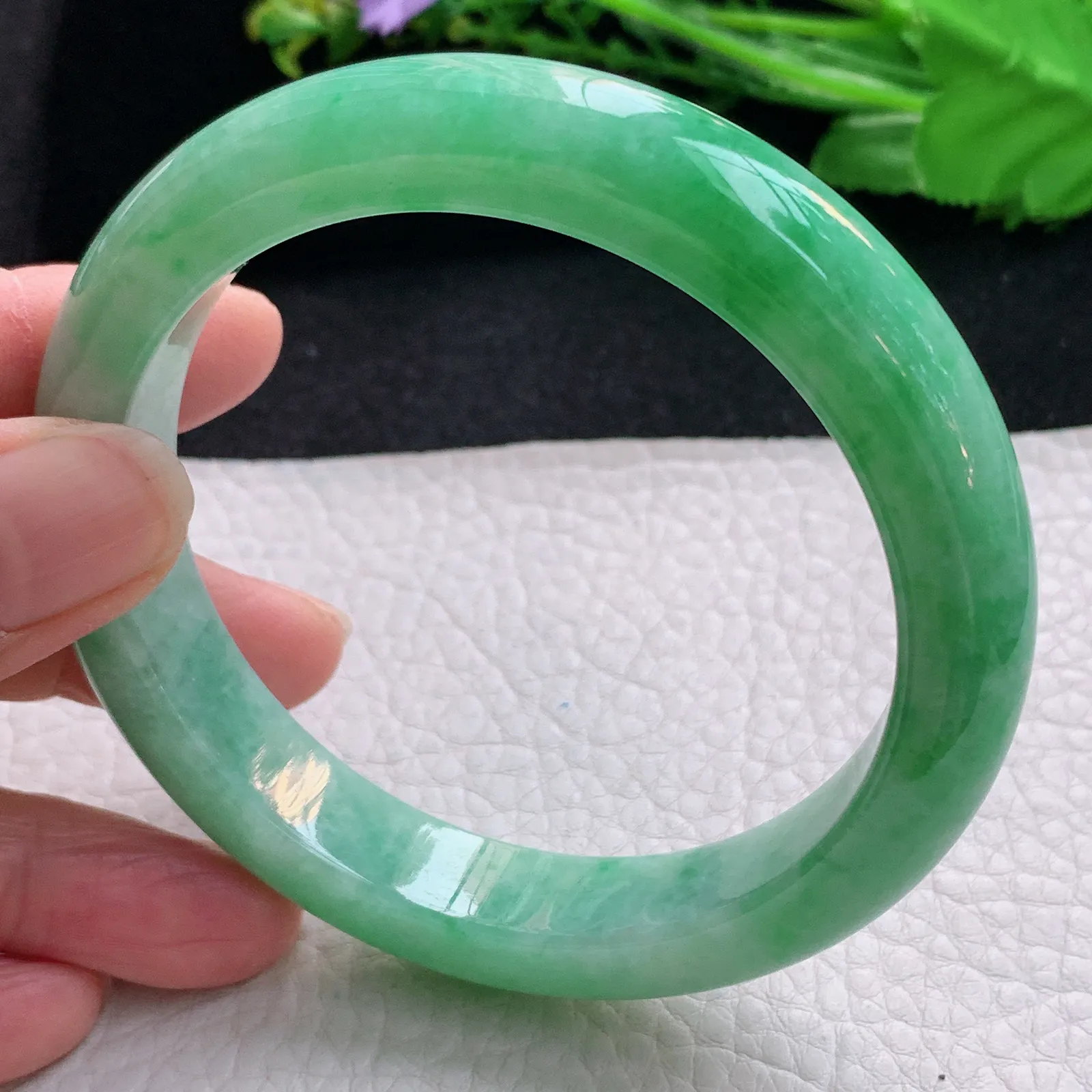 nr大圈口60*13.8*7.6平安镯 天然缅甸翡翠水绿宽边玉手镯 珠宝玉手环