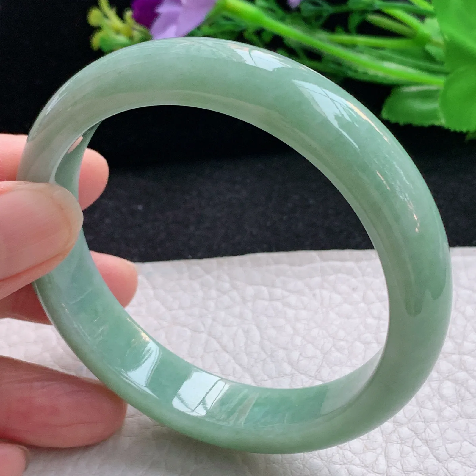 nr自然光59*12*8.8平安镯 翡翠冰润湖水绿宽边玉手镯 珠宝玉手环