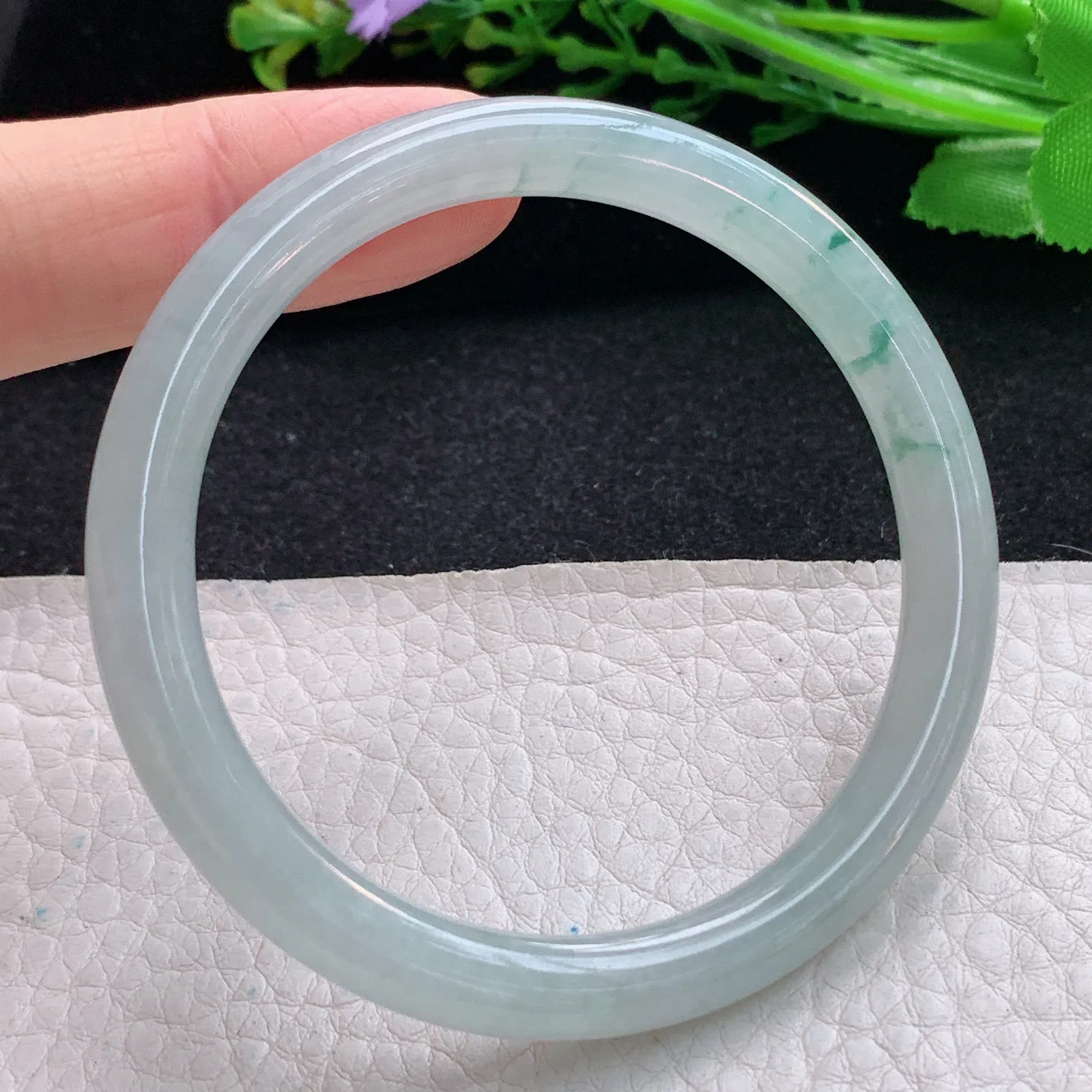 xx小圈口51.5*6.8*7叮当镯 翡翠a货冰飘花秀气圆条玉手镯 美人镯