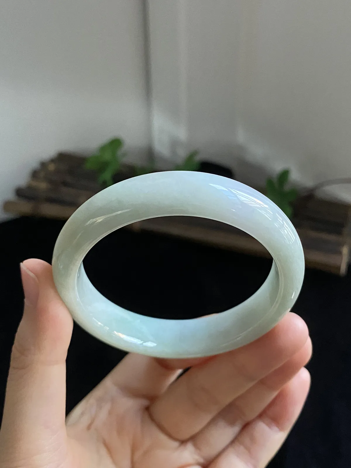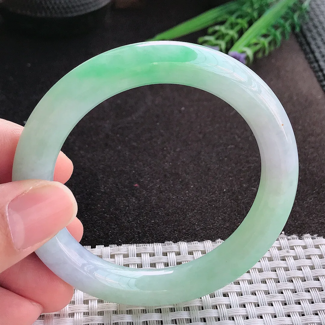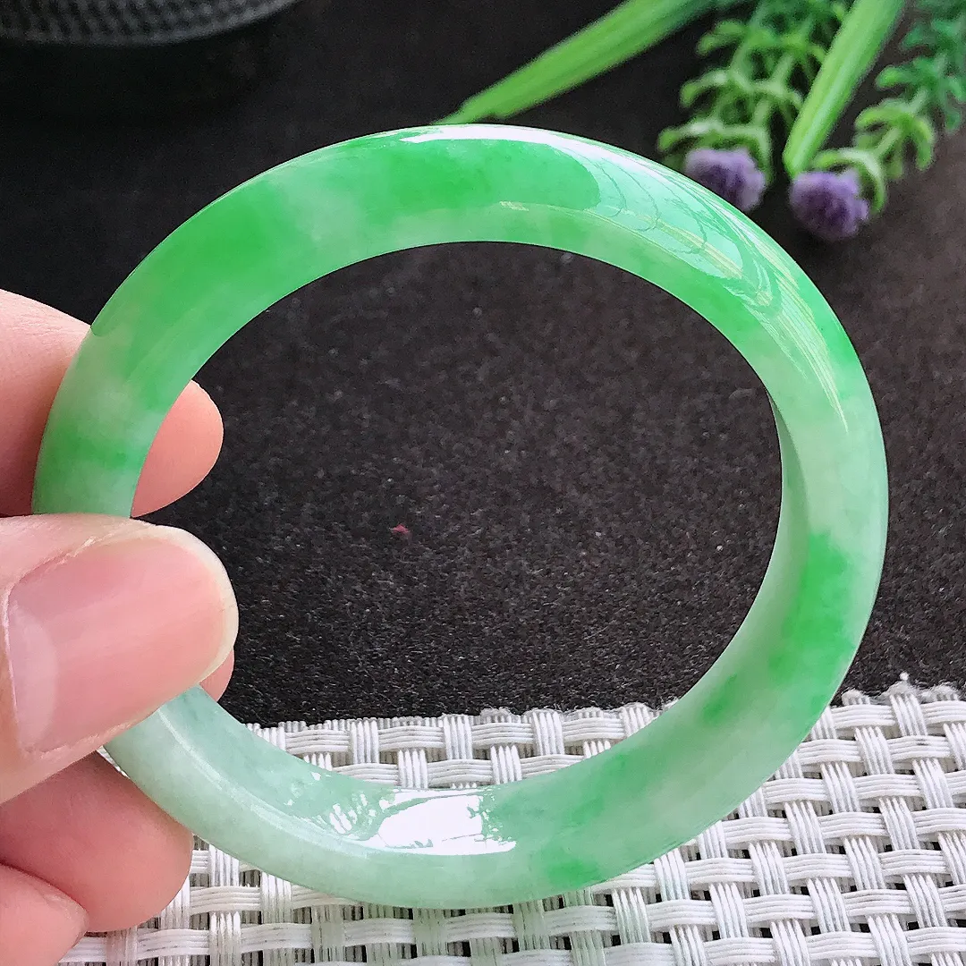 正圈52.4圈口,翡翠糯化种飘绿手镯