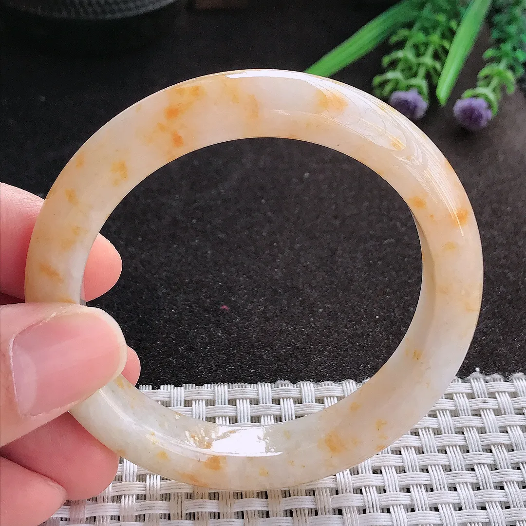 天然A货翡翠55/11.8/8.8老坑精美冰润特色洒金黄翡手镯宽边玉镯手环