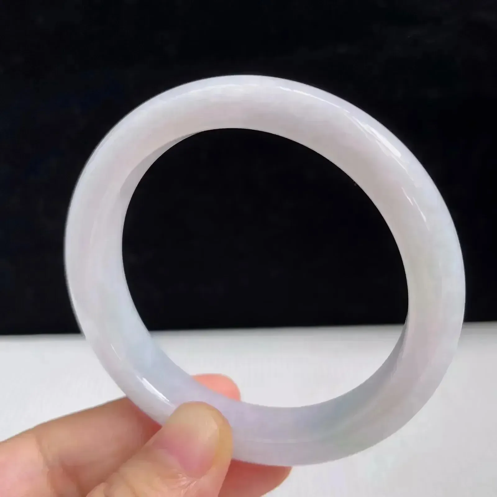 自然光拍摄天然翡翠A货淡紫好种水54mm手镯 47.27克