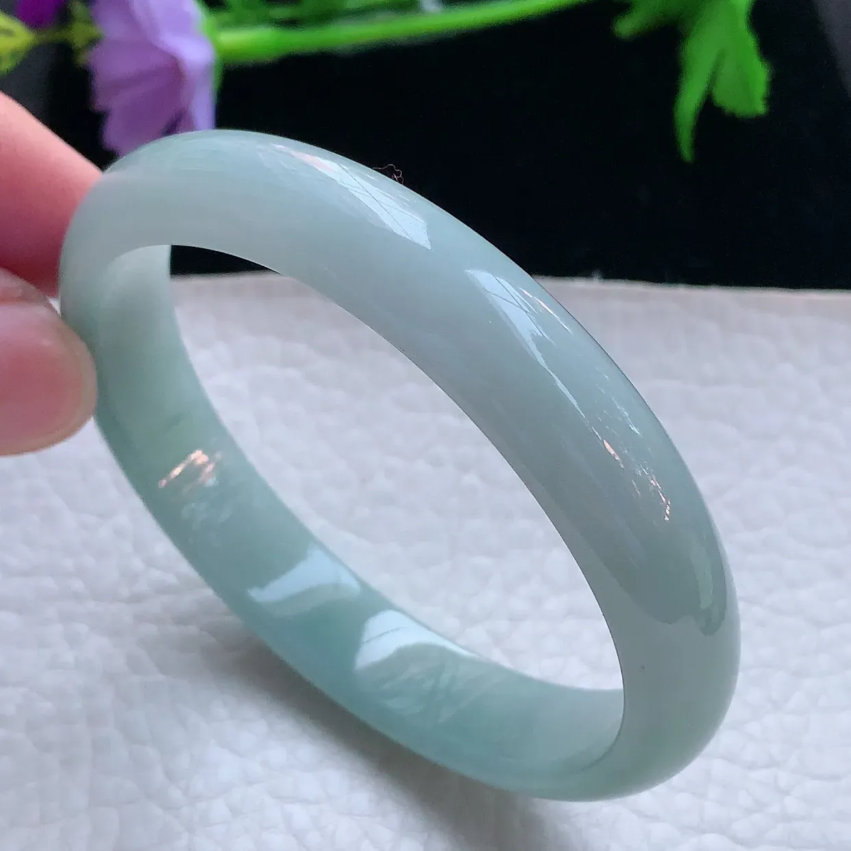 原本在纠结要不要退了,姣姣建议我收回去看看,一定有惊喜。 看到堂妹发来的视频,果然惊艳到了,美丽的不要不要的,种水好,颜色更漂亮。 谢谢可爱的姣姣主播🥰