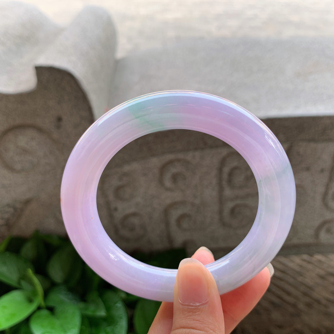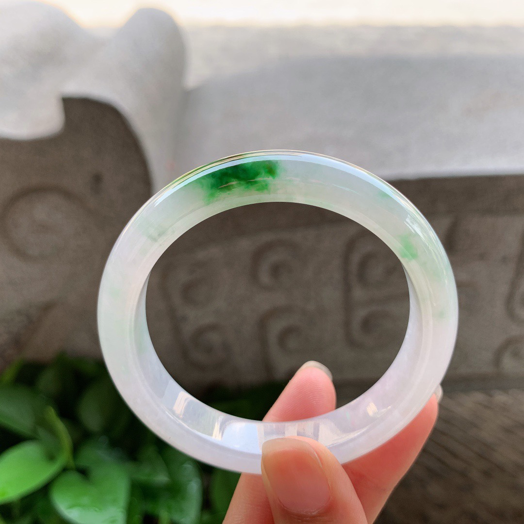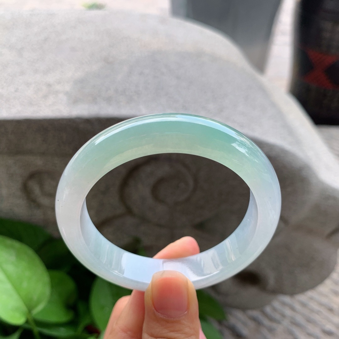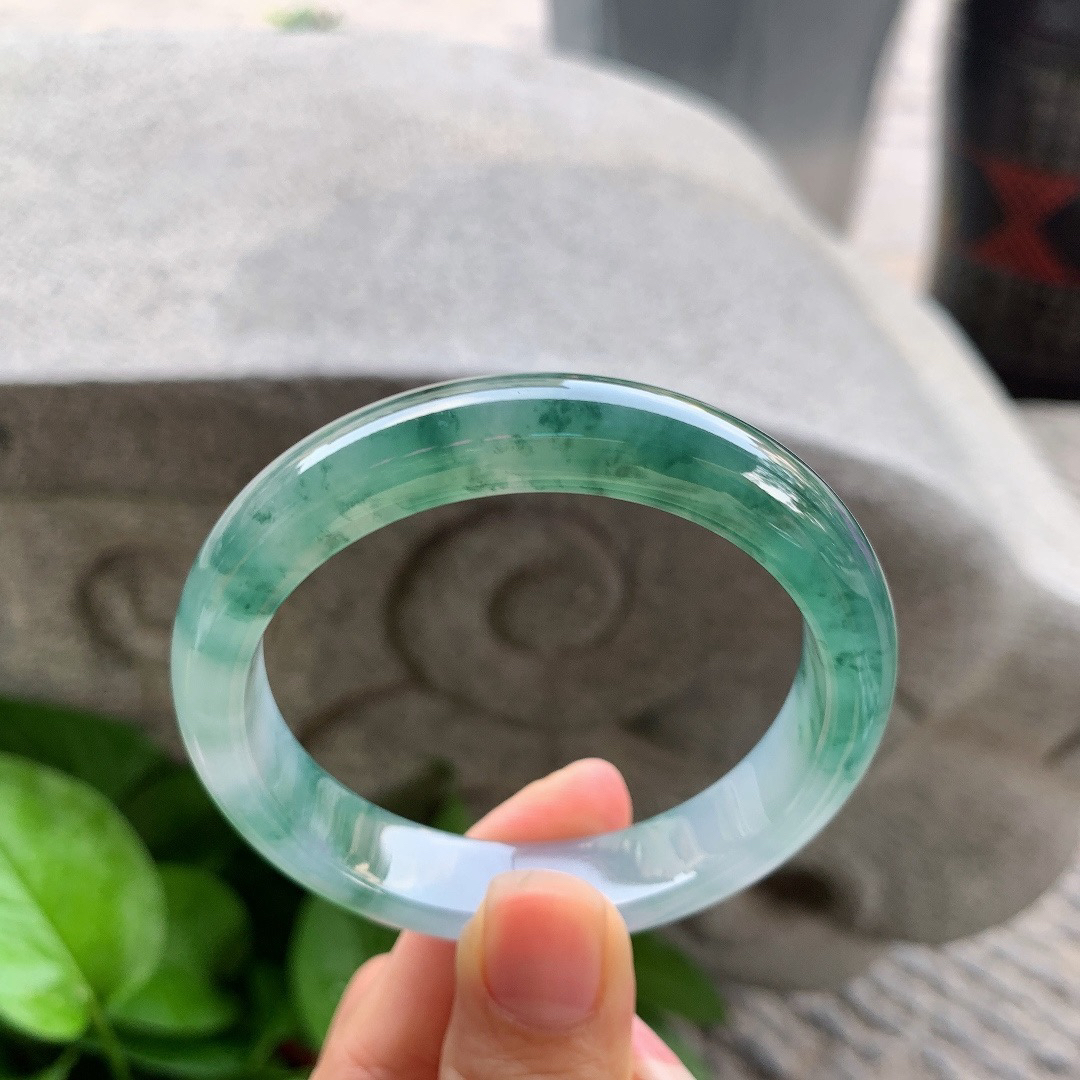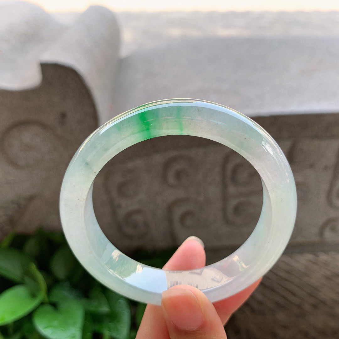 A货天然翡翠冰糯种飘花手镯59圈重量52.54 4月19日