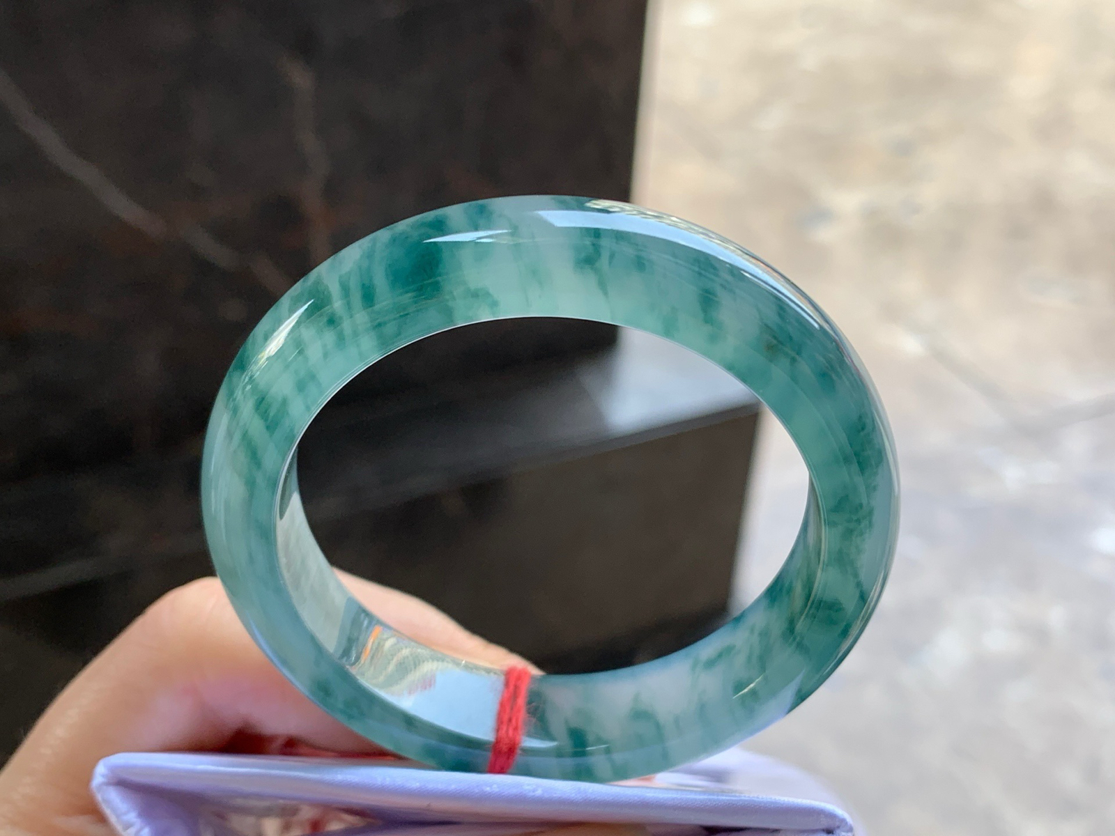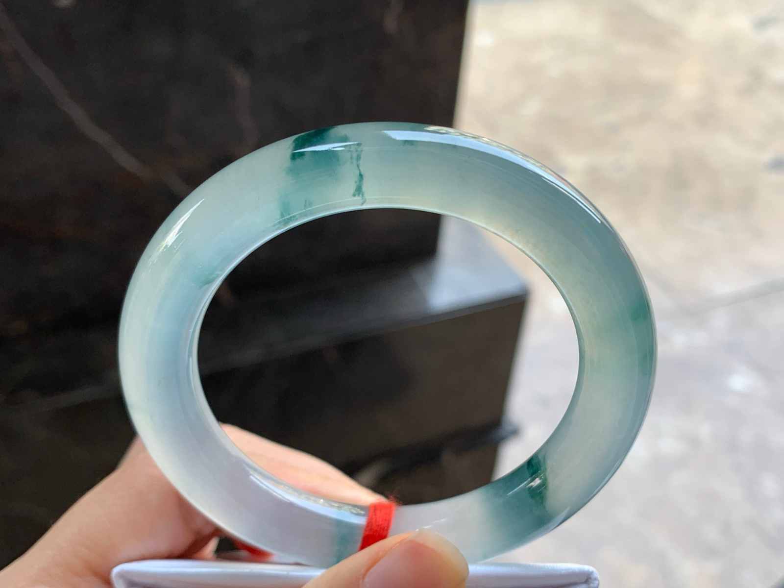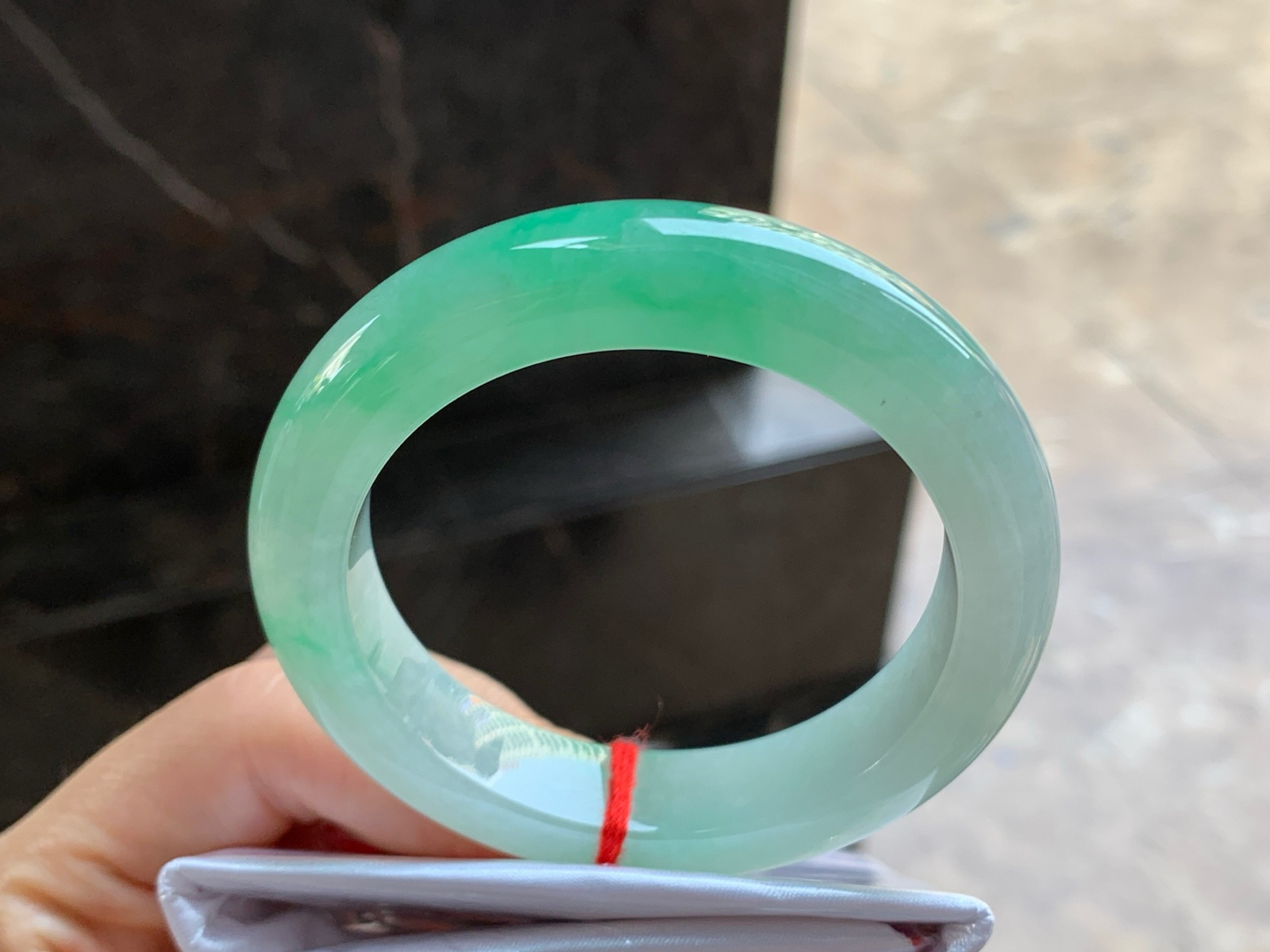 自然光拍摄53.7圈飘绿玉镯翡翠A货叮当美人手镯16.34g