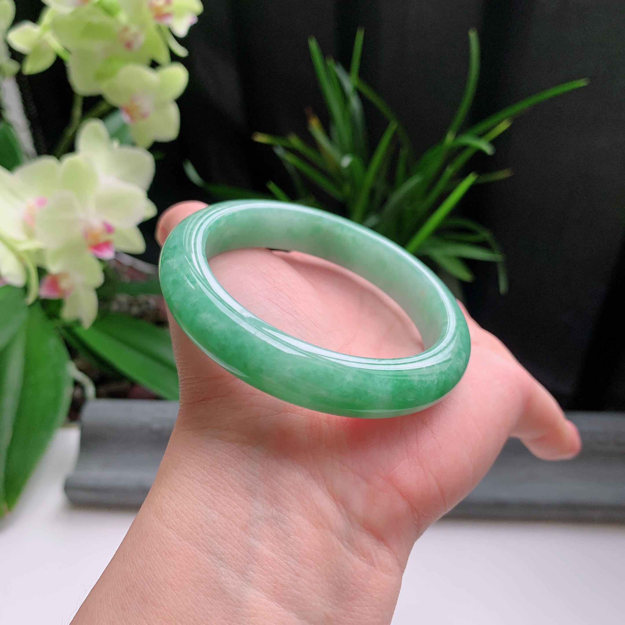 56.5-11 冰蓝花圆条手镯^_^种水透亮