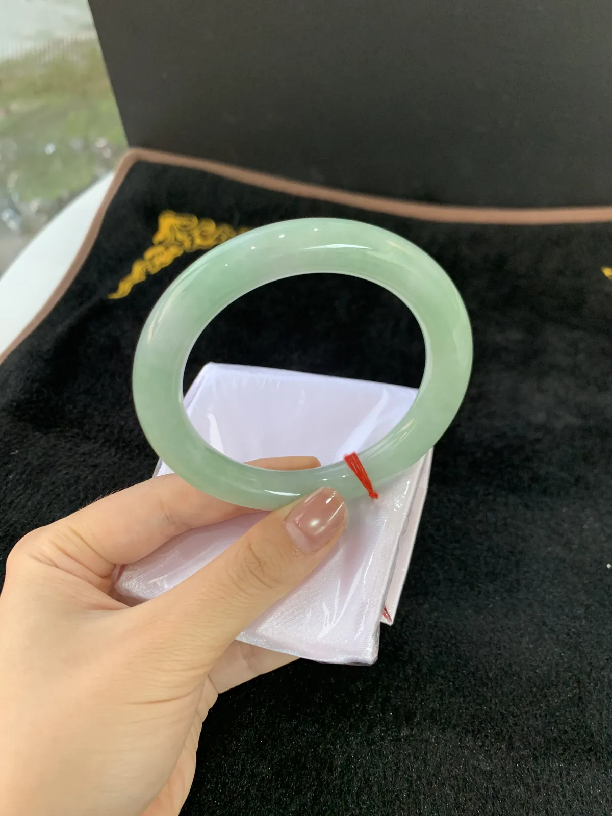 天然A货翡翠57/6.2/7.3老坑秀气冰润冰晴绿细条手镯叮当玉镯