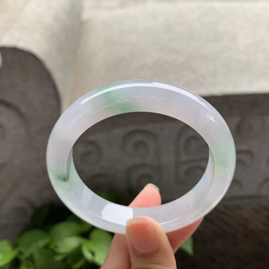 天然A货翡翠57/12.1/7.4老坑冰润果冻胶冰飘花手镯宽边玉镯