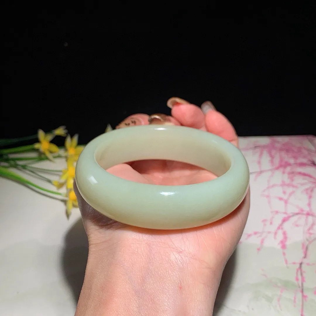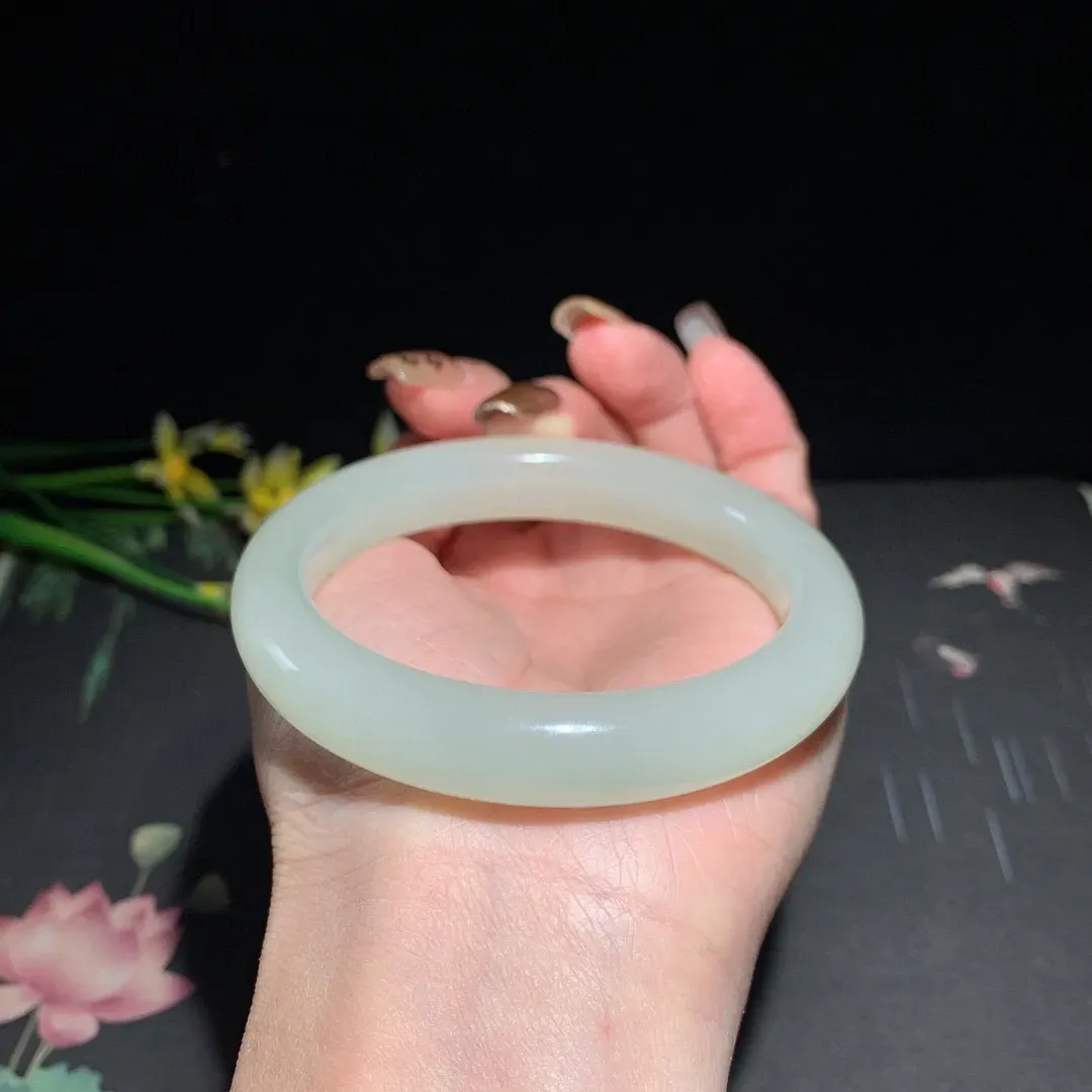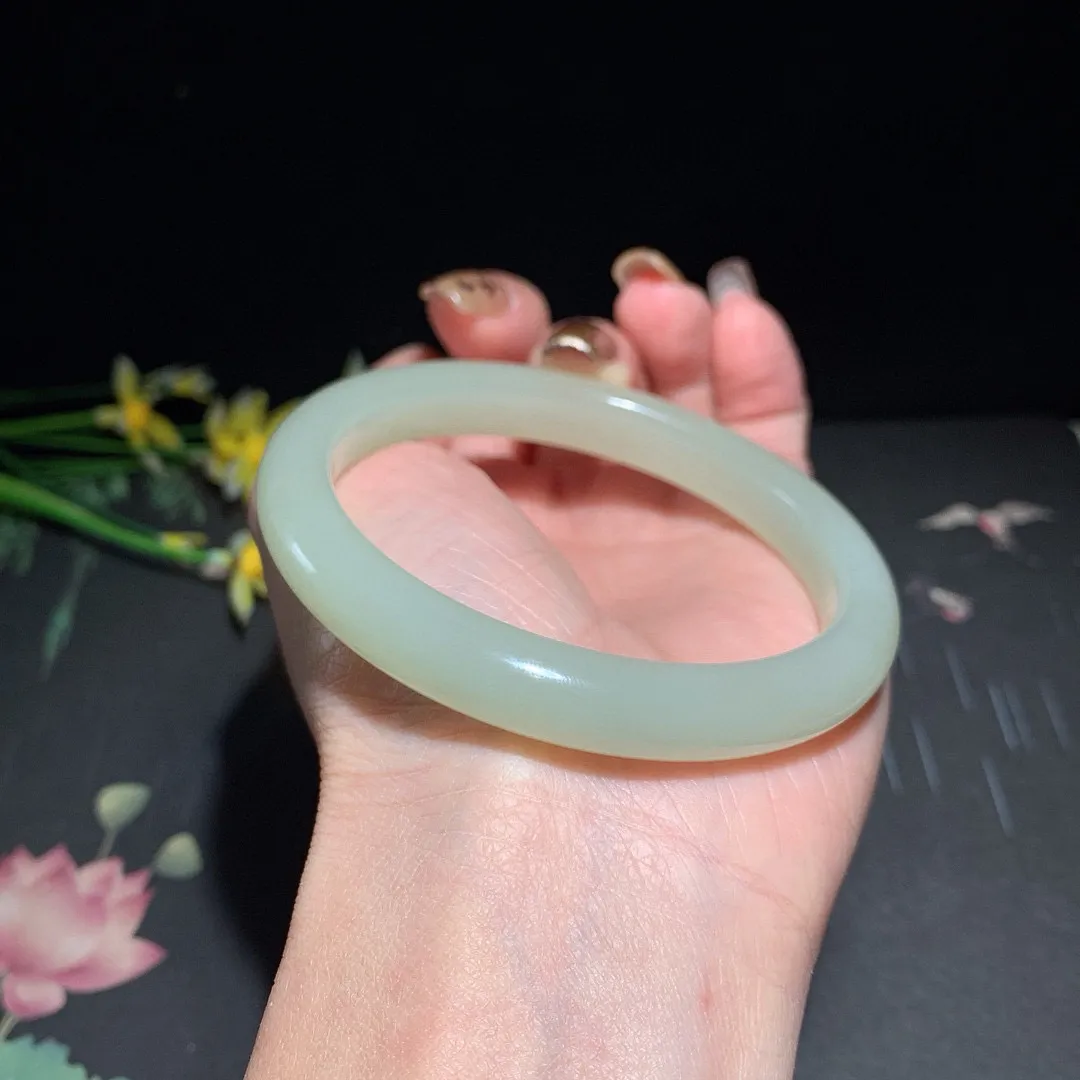 和田玉58圈口清水色手镯!晴水色!玉质细腻油润 底色纯净 无裂无杂 脂粉好,品质好!