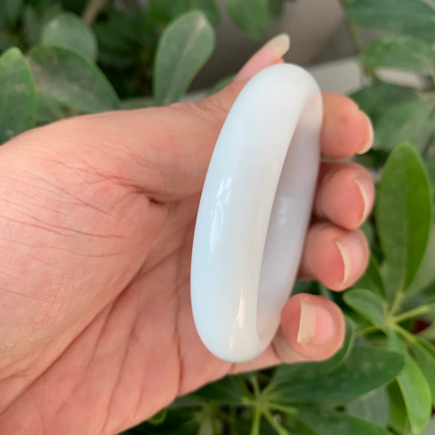 和田玉58圈口羊脂白玉宽条手镯,玉质细腻油润,密度紧凑,琢型圆润,高脂粉,品相大,佩戴端庄典雅,规格