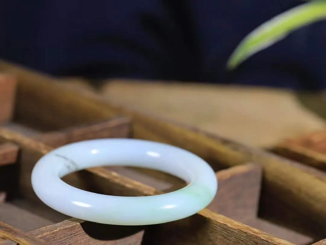 【婉约佳人.手镯】 精品️和田玉白玉带翠手镯 玉质温润细腻 油性十足 手感舒适,高华雅逸,线条流