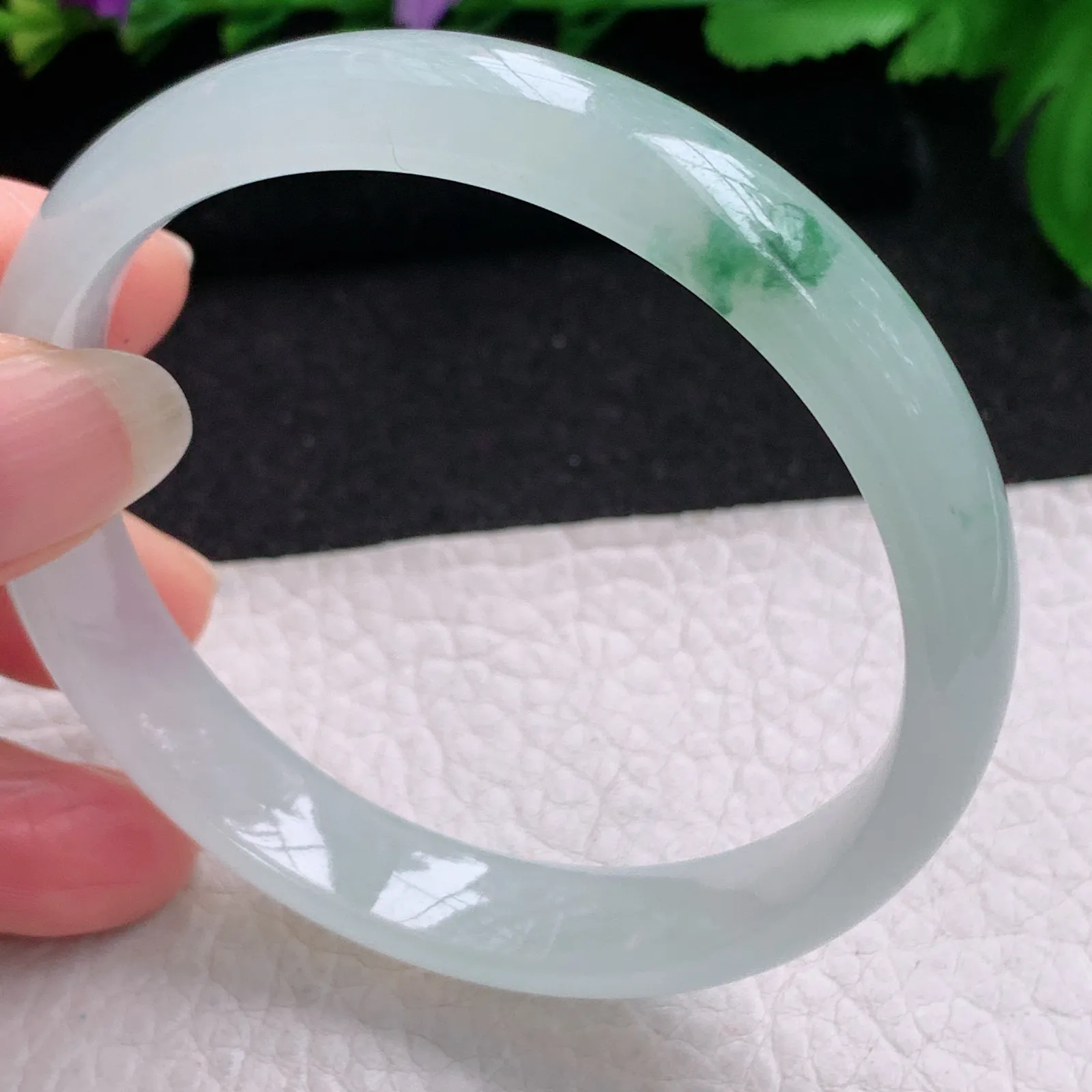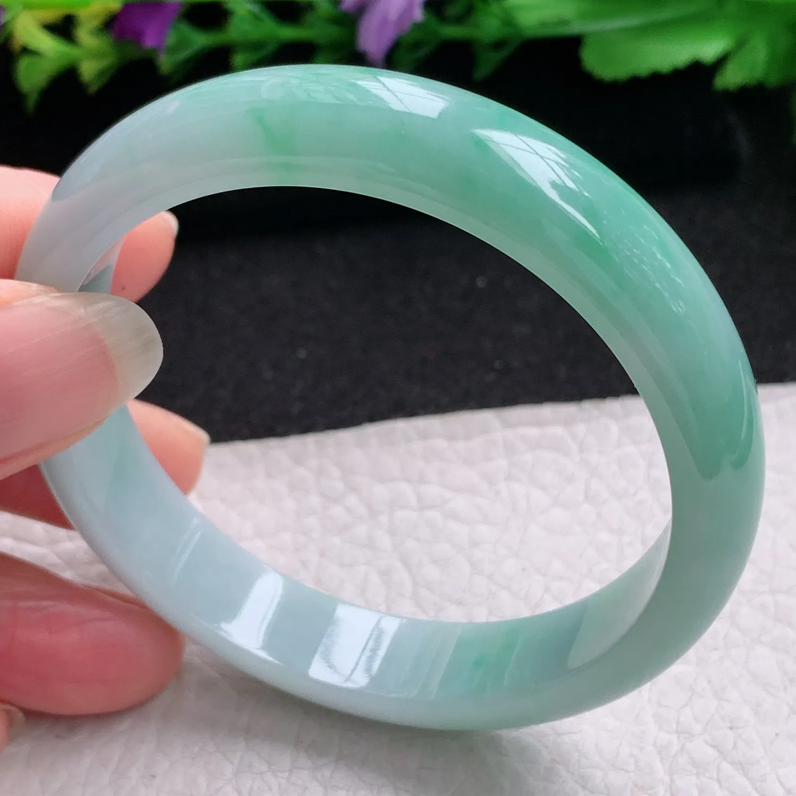 nr实拍54*14*8.3平安镯 缅甸翡翠精美飘花水润宽边玉手镯 玉手环