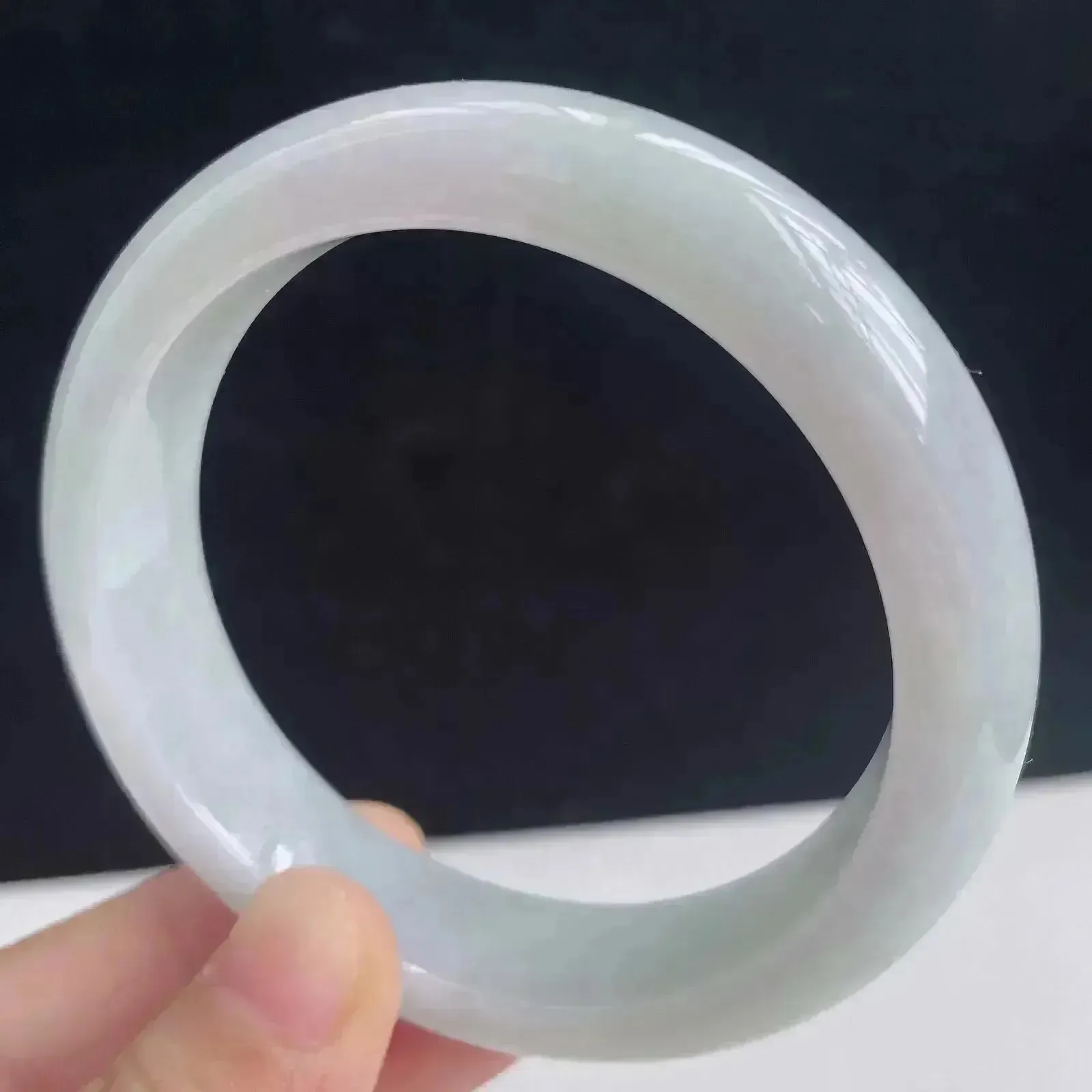 55.7mm自然光拍摄天然翡翠飘绿好种水正圈手镯 58.93克