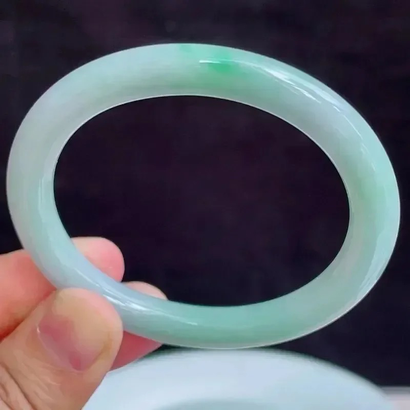 js实拍54*13*9.8平安镯 天然缅甸翡翠A货玉手镯飘花厚装宽边玉手环