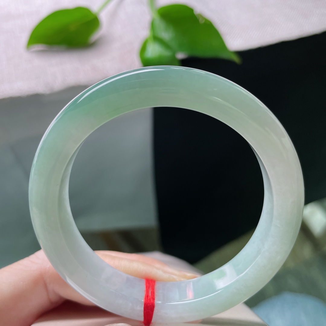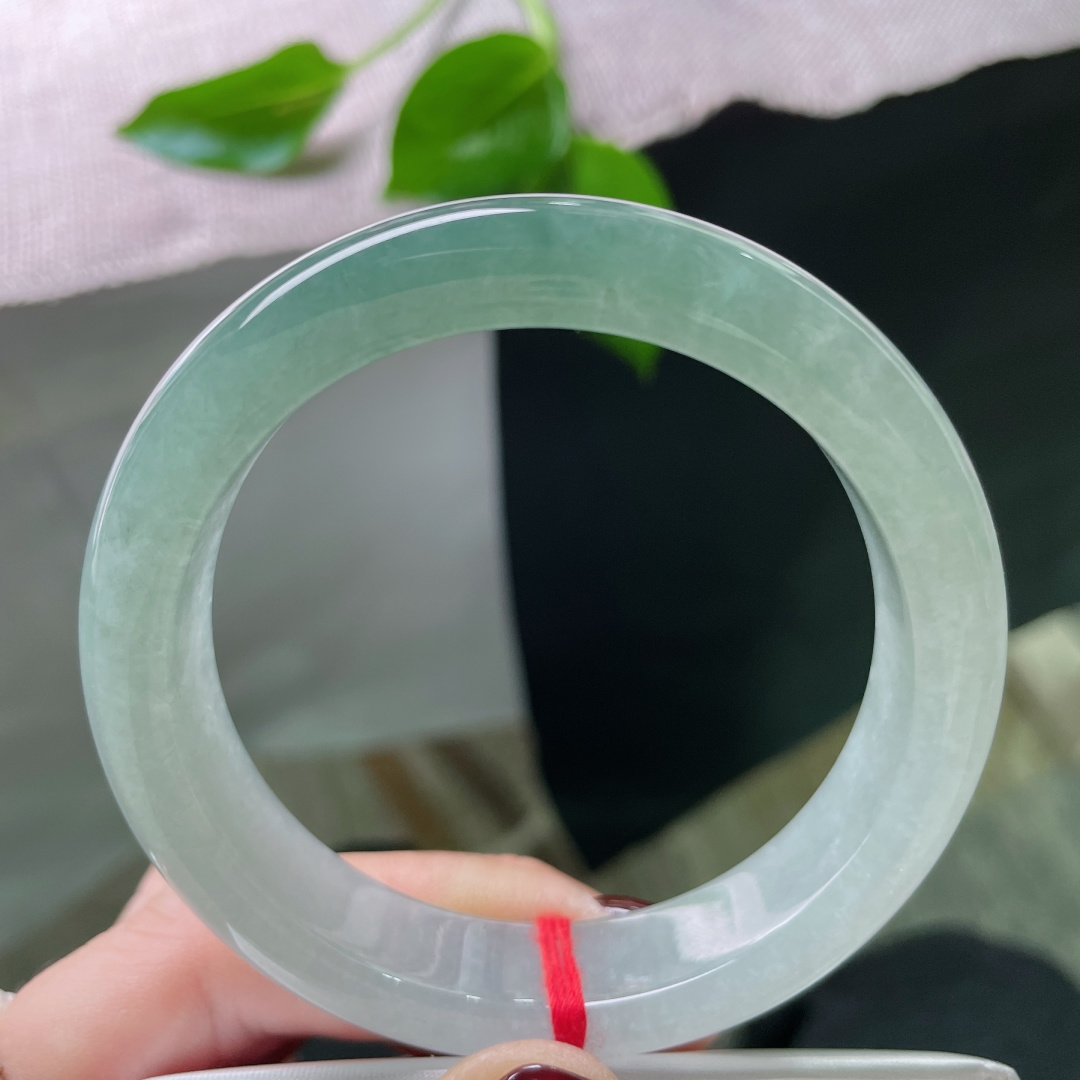 A货天然翡翠冰糯种飘花手镯59圈重量52.54 4月19日