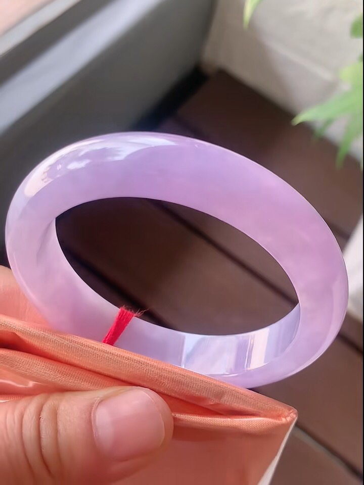 【翡翠名称】老种冰紫罗兰52.6正圈口手镯 【翡翠尺寸】52.6/12.4/8.6mm适合51.6-