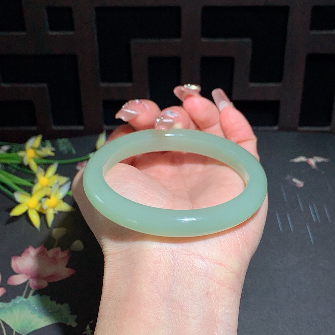 贵妃54圈口,天然A货翡翠冰糯种水润飘绿玉手镯,水润秀丽,飘花灵动,种水十足,视觉甜美可人,恰到好