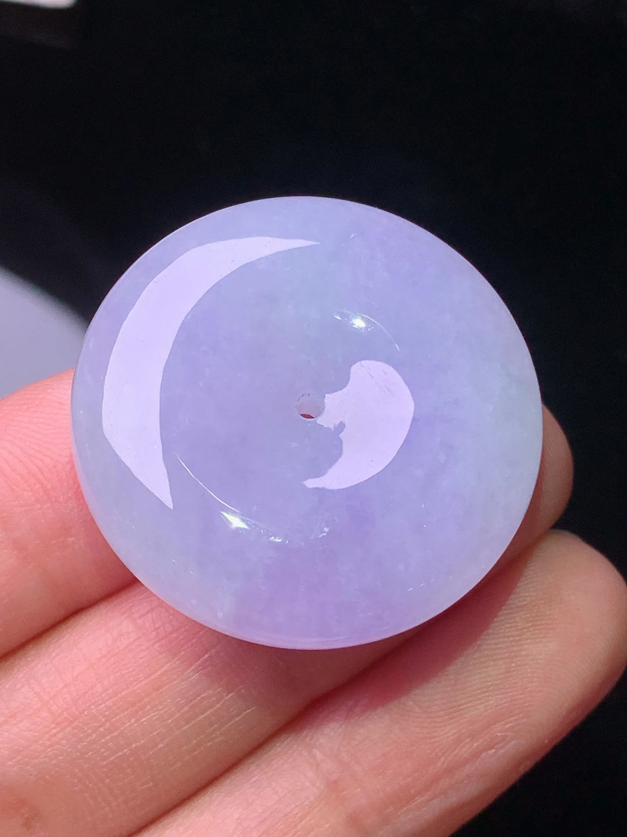 淡紫罗兰平安扣吊坠 玉质细腻 色泽艳丽清新 整体尺寸29.3*8.6