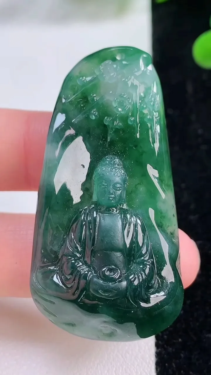 天然A货翡翠飘花大日如来吊坠,尺寸52.5-27.3-11,重量:23.83g 11月25日