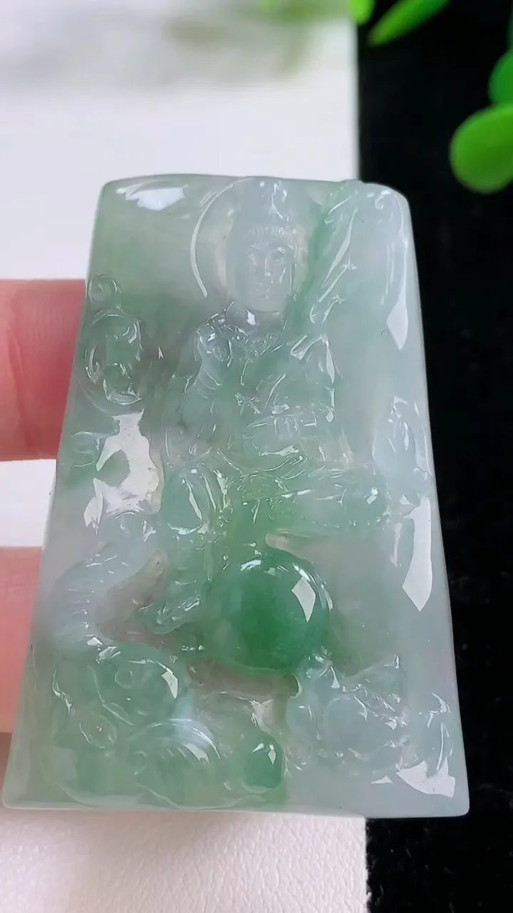 天然A货翡翠普贤菩萨吊坠,尺寸51.4-36.2-4.8,重量:20.00g 11月25日