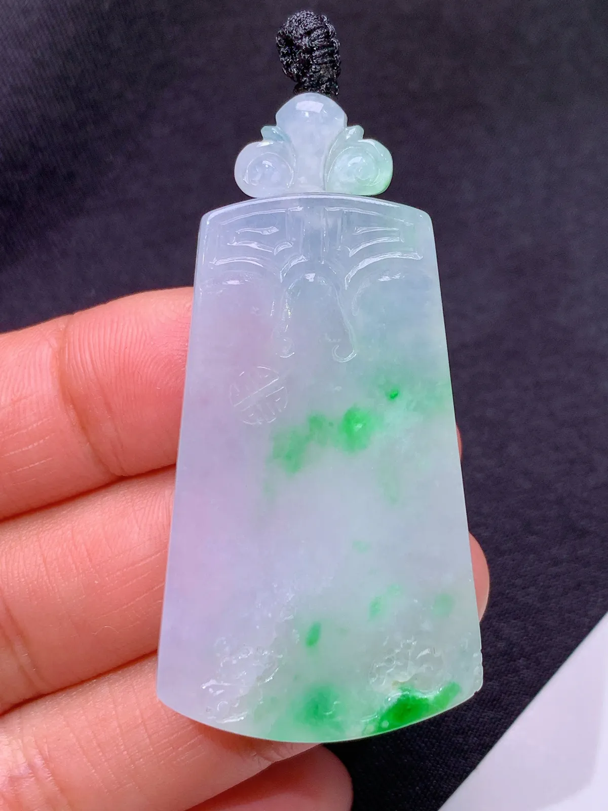 冰飘绿无事牌,冰润色阳,玉质细腻,种水足 尺寸43.6*26.4*5.1