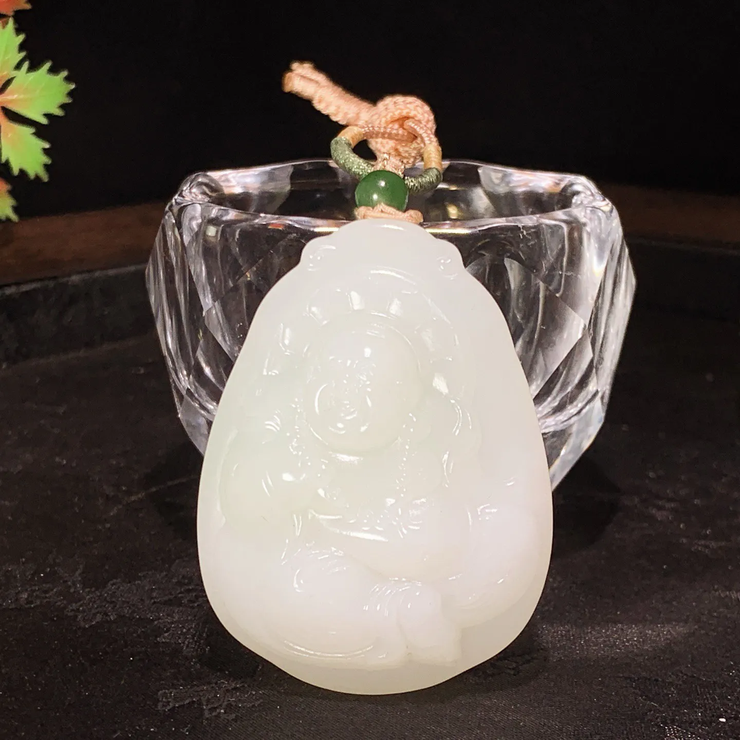 和田玉白玉羊脂白佛引福来挂件。尺寸52/39/16重53克。白度一级。玉质细腻油润。手推出油。佩戴高