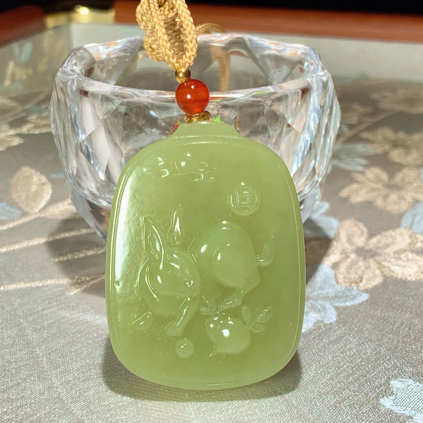 新疆若羌黄口料前途无量兔子牌子挂件。尺寸48/36/13重47克。玉质细腻油润。手推出油。佩戴高端典