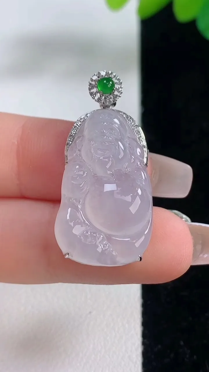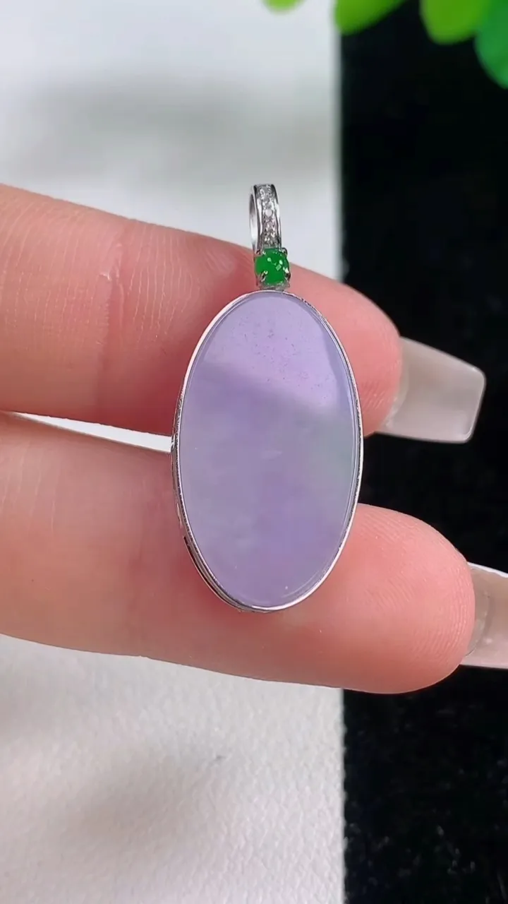 天然A货翡翠18K金春带彩紫罗兰无事牌吊坠,尺寸21.7-12.3-3.2,重量:3.09g 12月