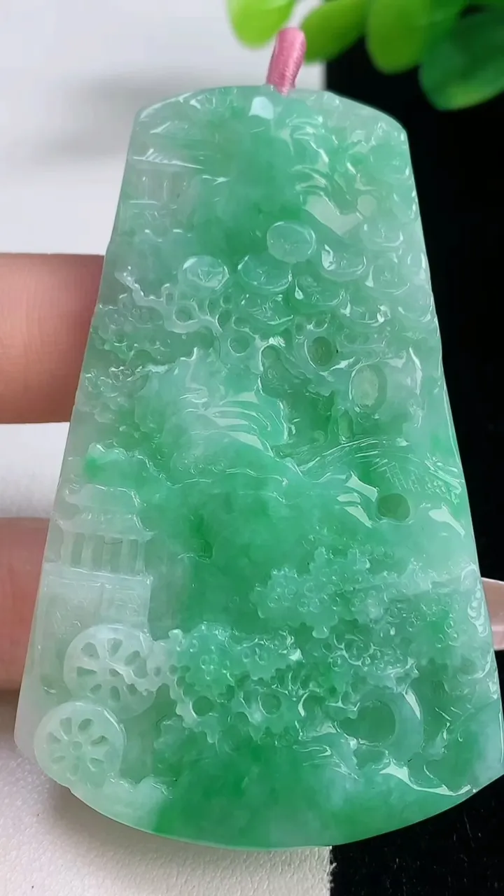 天然A货翡翠山水牌吊坠,尺寸67.8-43.2-6.9,重量:38.20g 12月11日