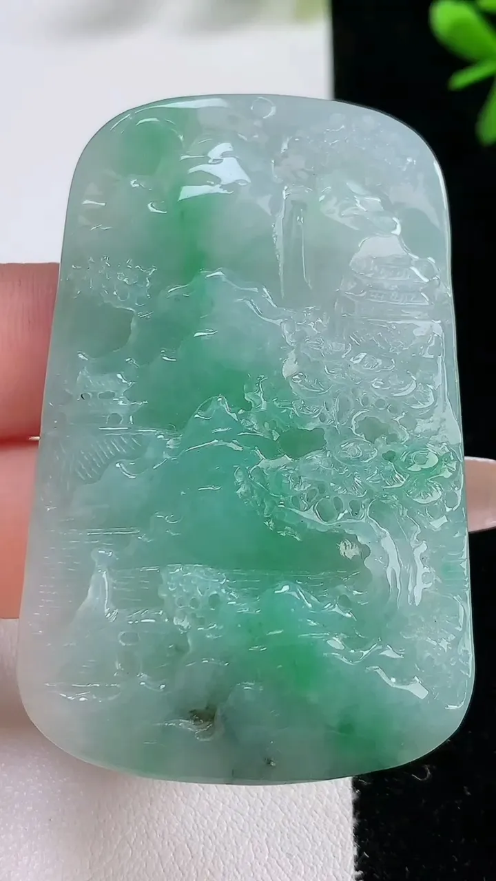 天然A货翡翠山水牌吊坠,尺寸58-37-7.5,重:38.18g 12月20日