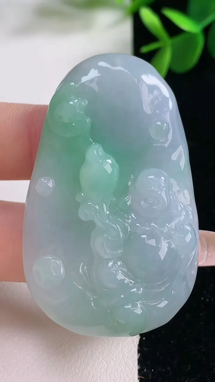 天然A货翡翠大势至菩萨吊坠,尺寸58-40.7-7.2,重量:41.52g 12月25日