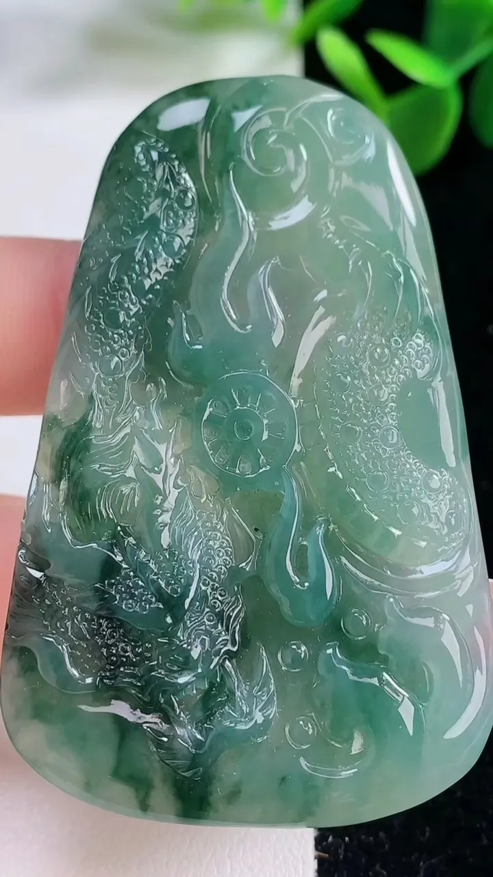 天然A货翡翠龙牌吊坠,尺寸64-38.3-14.4,重量:66.66g 12月25日