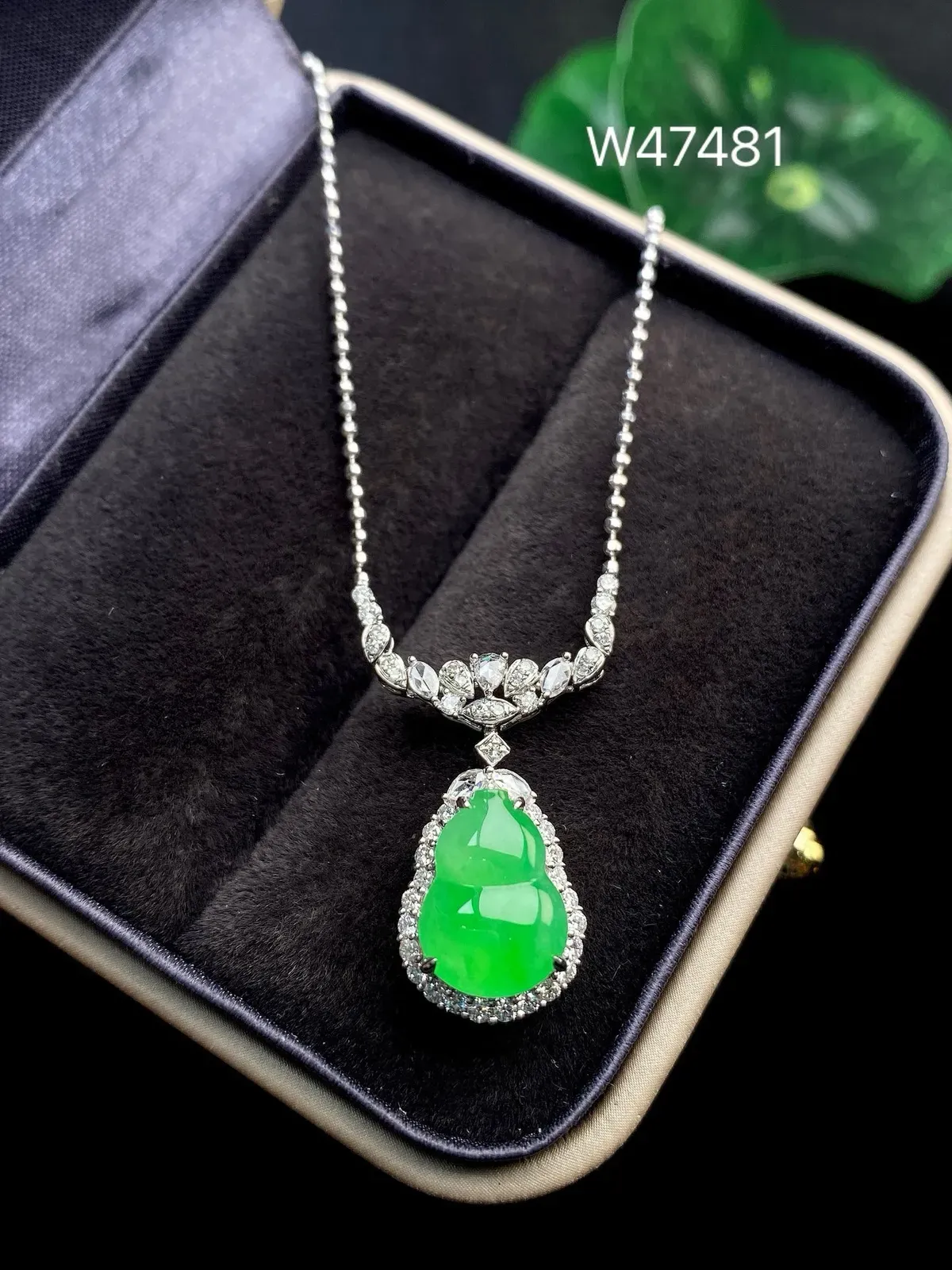 【冰种满绿葫芦吊坠】种水色俱全,冰透闪亮,通透感饱满度很好,18k金钻豪华镶嵌,裸石尺寸11.5*8